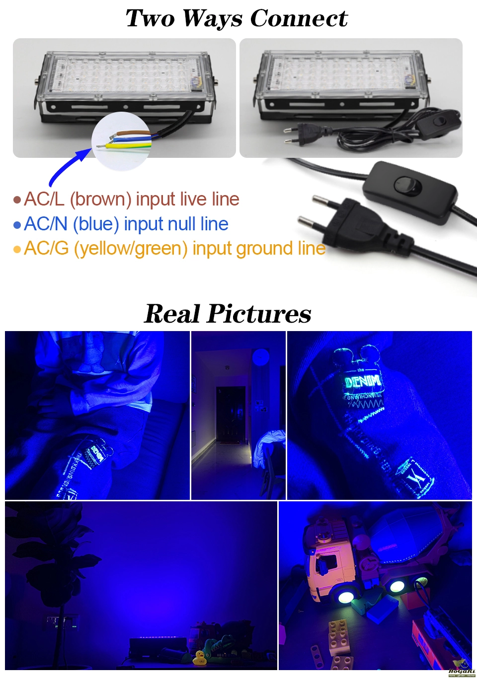 395nm 400nm Led UV Floodlight 50W 100W LED Stage Blacklight 220V Waterproof Ultravilet Lamp Fluorescent Party Stage Light