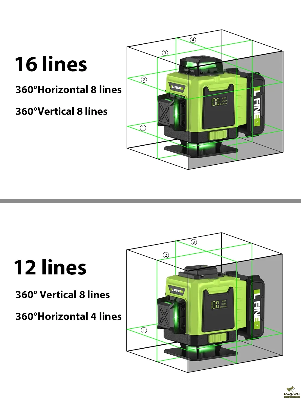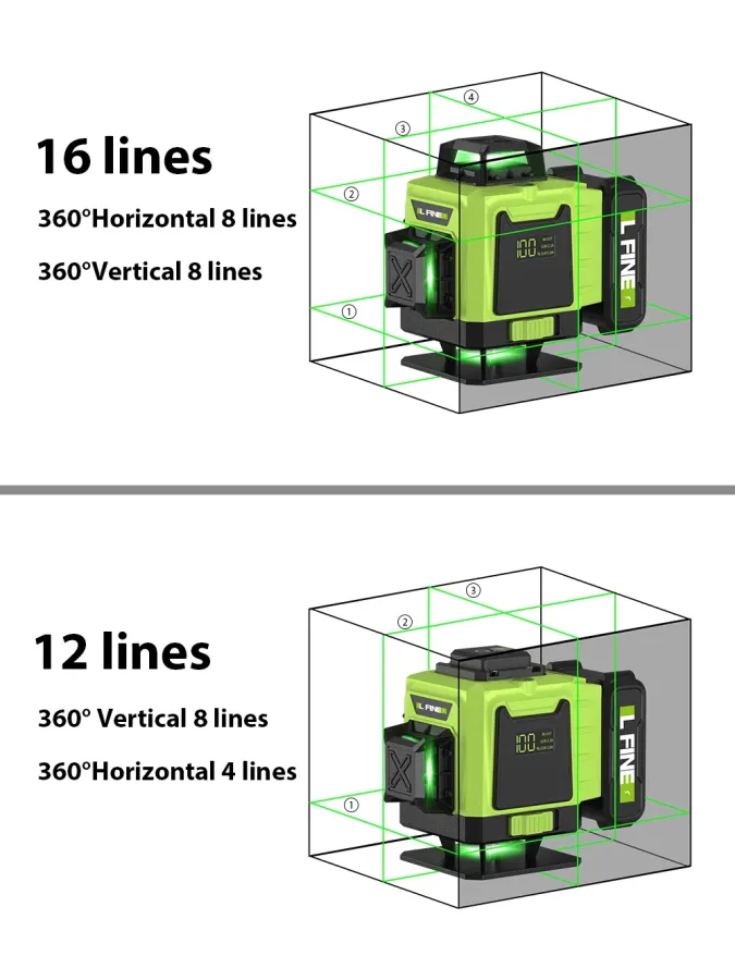 LFINE 3D/4D Laser Level 12/16 Lines Horizontal And Vertical With Remote Control 8 Lines 360°Self-leveling Laser Levels
