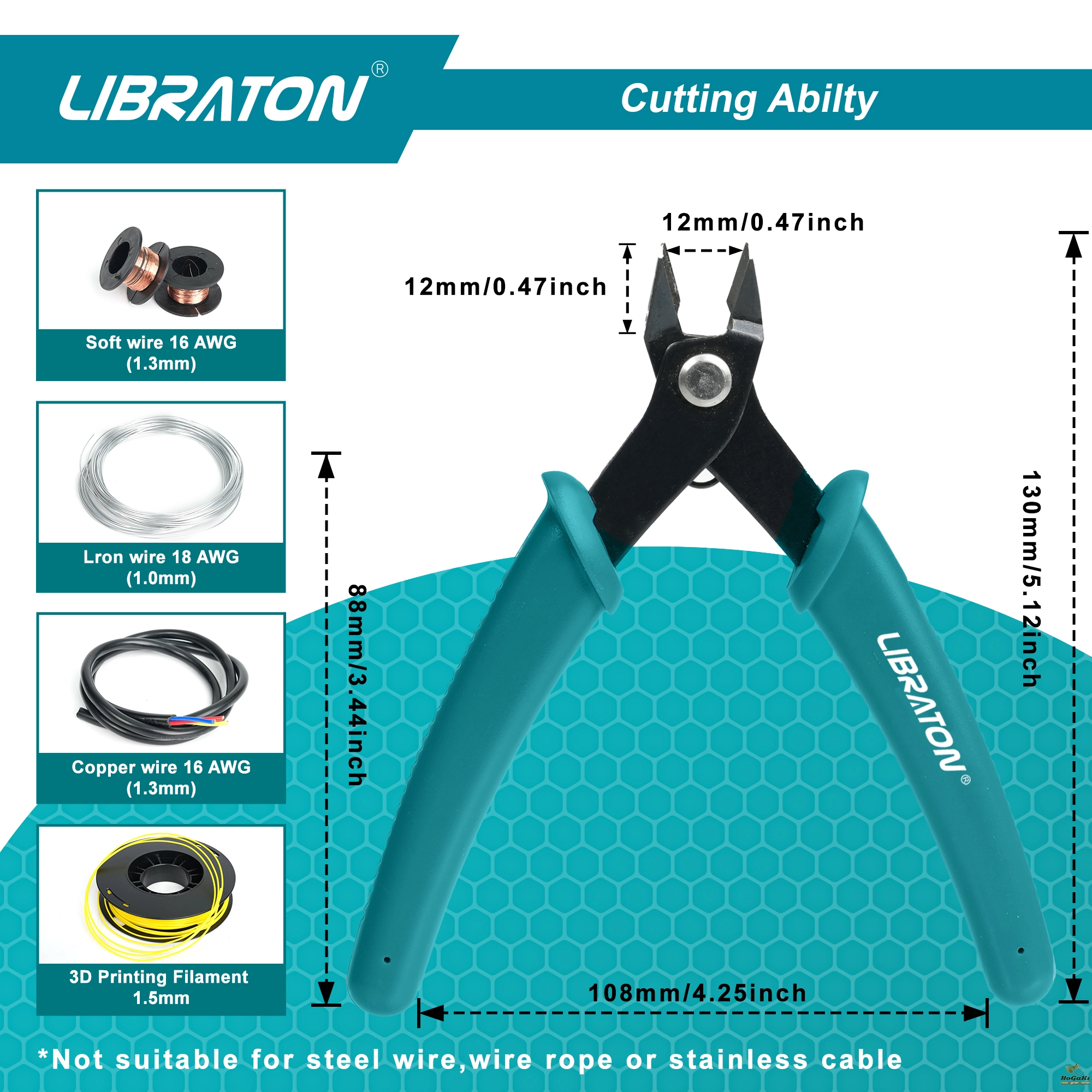 LIBRATON 5.12 Inch Micro Wire Cutter, Precision Mini Flush Cutters and Clean Cut Pliers for Electronics, Model, Jewelry, Model Kits