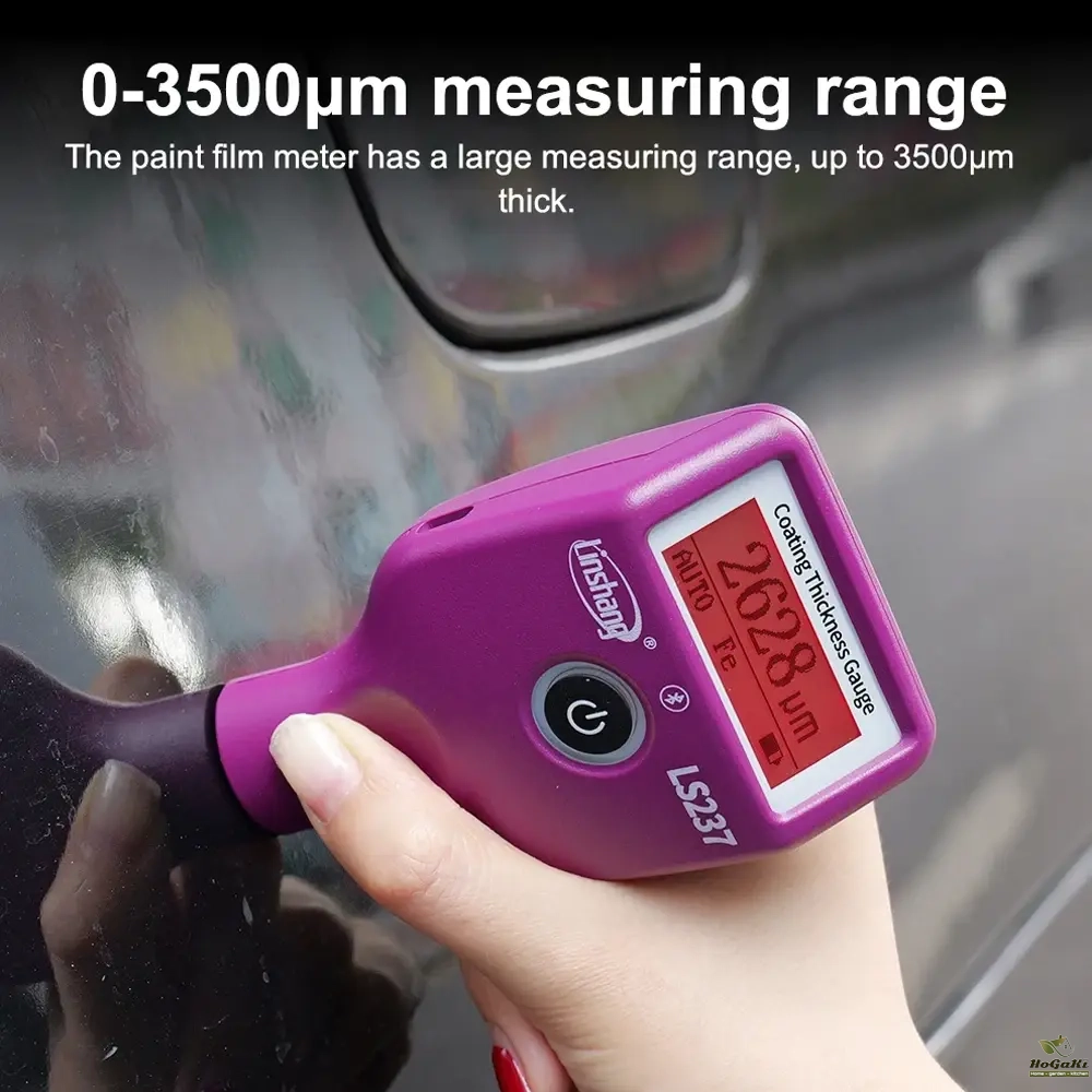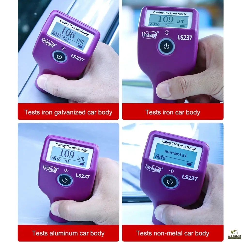 LS237 car paint meter is specialized in automotive paint thickness inspection. The instrument can not only measure the paint thickness above ferrous and aluminum materials, identify non-metallic, but also intelligently identify ferrous putty and iron galvanized. LS237 adopts three-color backlight and three-color indicator display, and according to different paint thicknesses the screen and buttons display different colors of light. LS237 paint film meter also adopts rechargeable lithium batteries to supply, with ultra-low power consumption. It also has Bluetooth function, equipped with APP, support inspection report export and sharing.