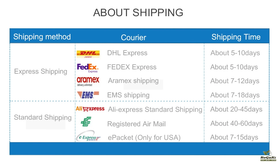 Packages from our warehouse in China will be shipped by ePacket or EMS depending on the weight and size of the product. Packages shipped from our US warehouse are shipped through USPS.