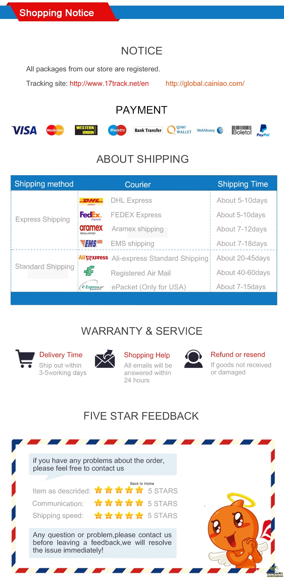 Packages from our warehouse in China will be shipped by ePacket or EMS depending on the weight and size of the product. Packages shipped from our US warehouse are shipped through USPS.