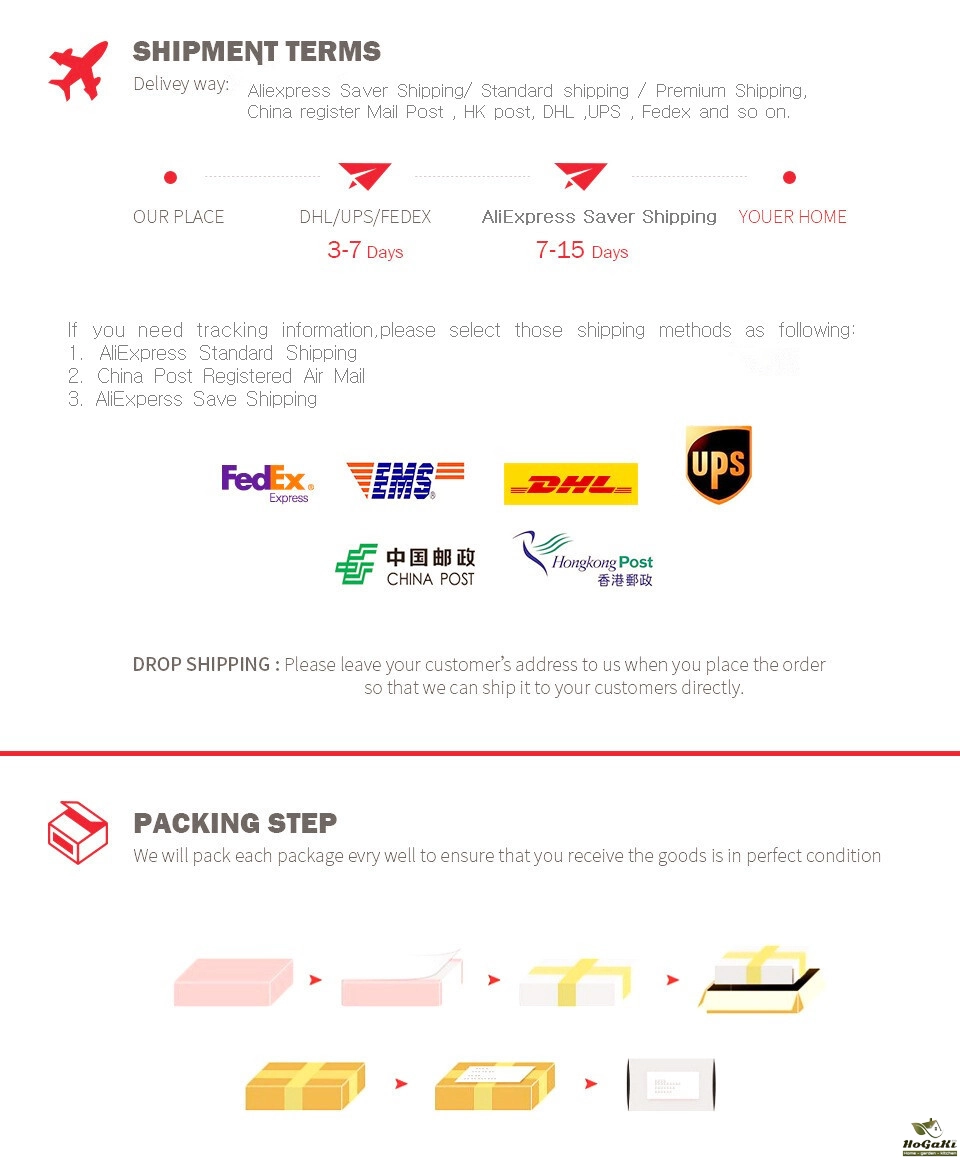 Packages from our warehouse in China will be shipped by ePacket or EMS depending on the weight and size of the product. Packages shipped from our US warehouse are shipped through USPS.