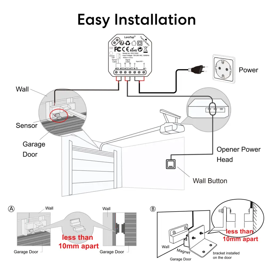 1. Smart your garage Door by phone,Remote and Voice Control, just tapping the Tuya or Smart Life App from anywhere or speaking to your Alexa, Google Assistant . Enable the door open or close even when you are not at the site.