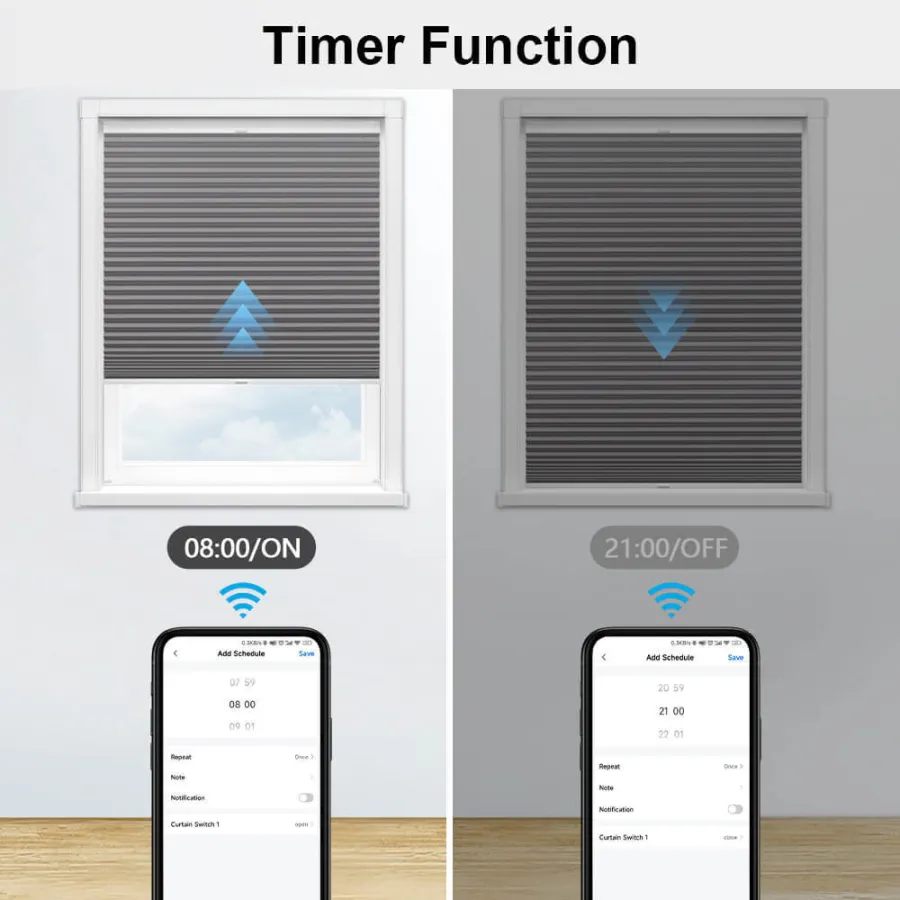 - Timer and Schedule: You can set a timer to open or close the curtains at a specified time.