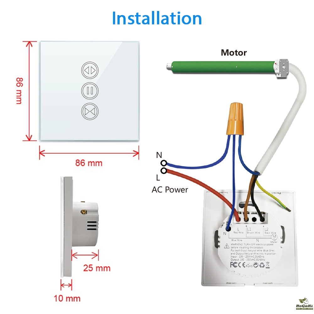 Please note at least 3 wires must be required for your motor, Live Wire 1, Live Wire 2 (for OPEN and CLOSE), and Neutral wire , otherwise it can't be connected to the motor , The switch can be compatible with any electric shutter motor with 100-250 VAC voltage input, 600W Max. but the neutral wire must be required for installation.