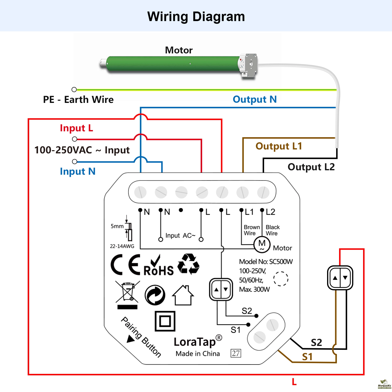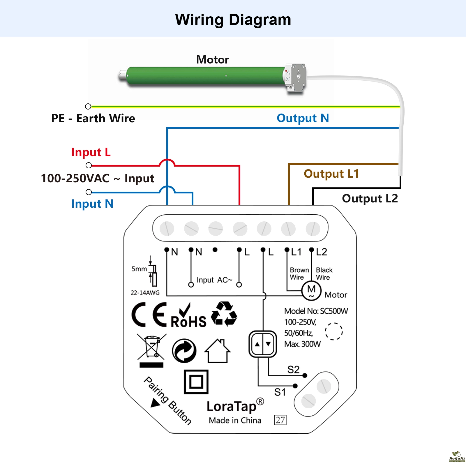 - Please check your motor is with 4 wires (Blue Wire, Brown wire, Black Wire, Green/Yellow Wire) before you buy our curtain switch module. And please be noted that neutral wire is a must for the installation, or you can't use our device.