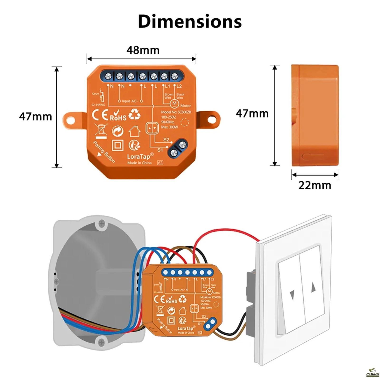 - Wall Switch Control: After you install this module, your wall manual switch still works, it can open , or close the shutter.