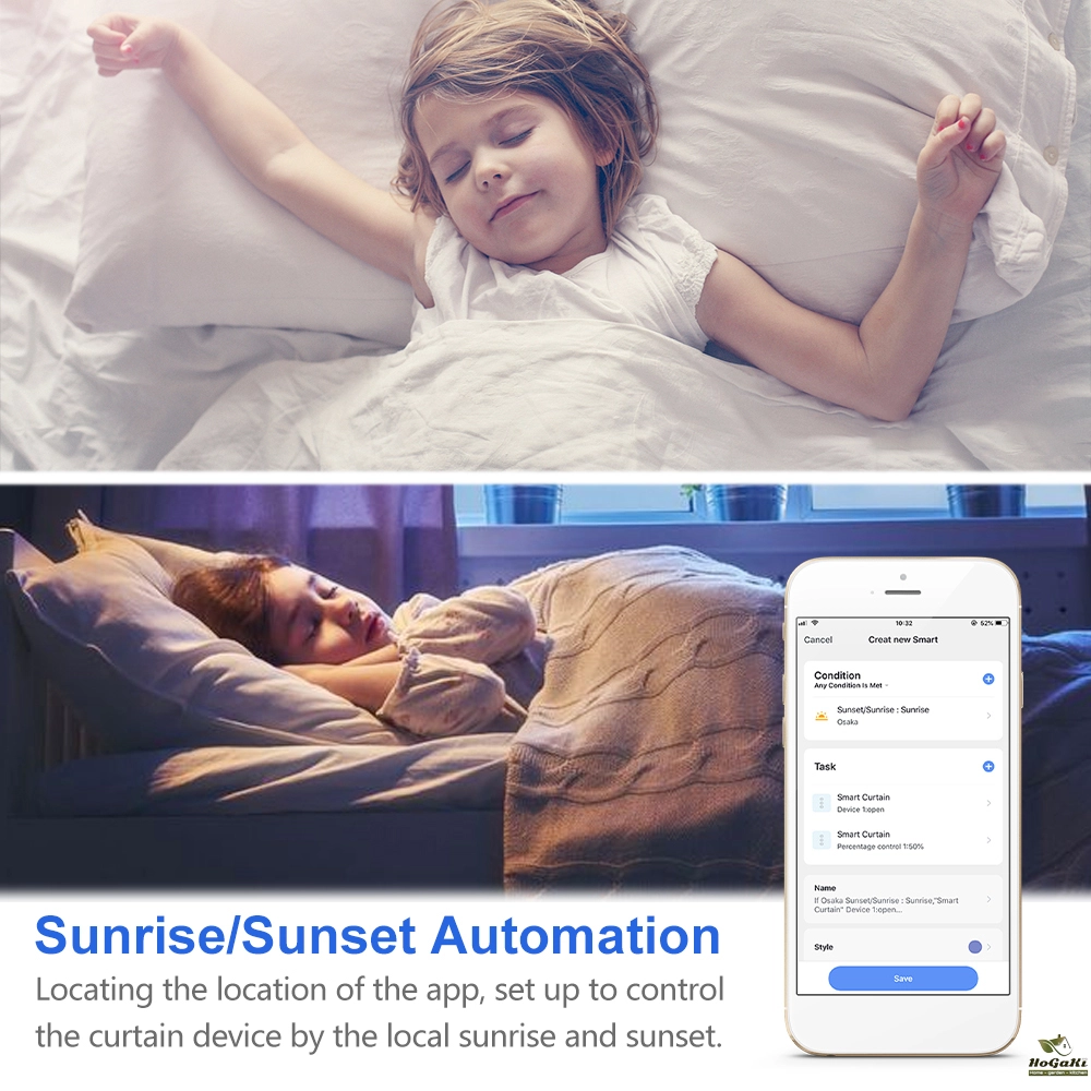 - Sunrise/Sunset Automation: You can set the sunrise/sunset automation in the smart life app.