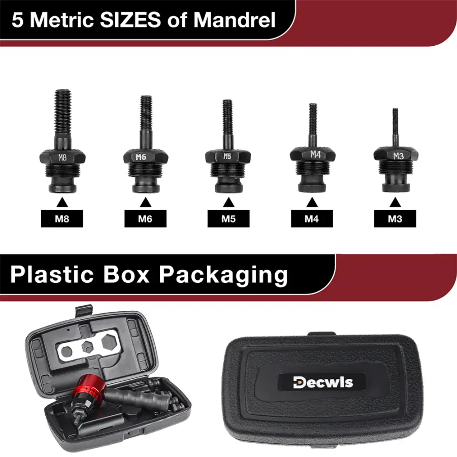 4. Applicable rivet diameter: The rivet gun is suitable for adapters with diameters: M3, M4, M5, M6, M8.