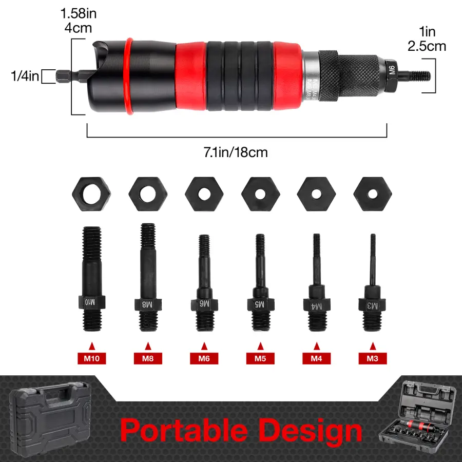 M3M4M5M6M8 Electric Rivet Gun Rivet Nut Gun Drill Bit Adapter Insert Nut Pull Riveting Tool, For Electric Drill/Hand Wrench