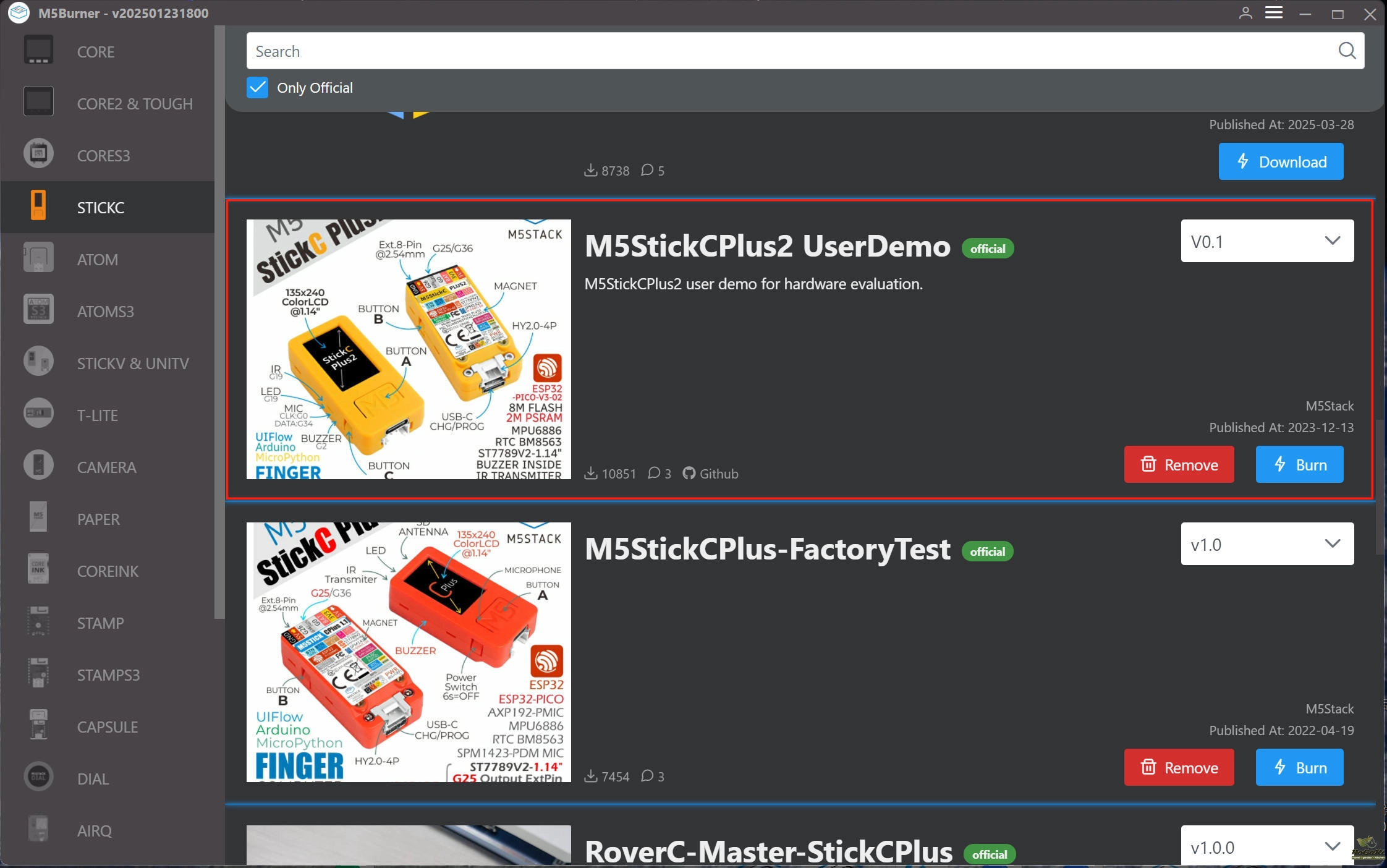 Please burn back official firmware. M5StickCPlus2 UserDemo