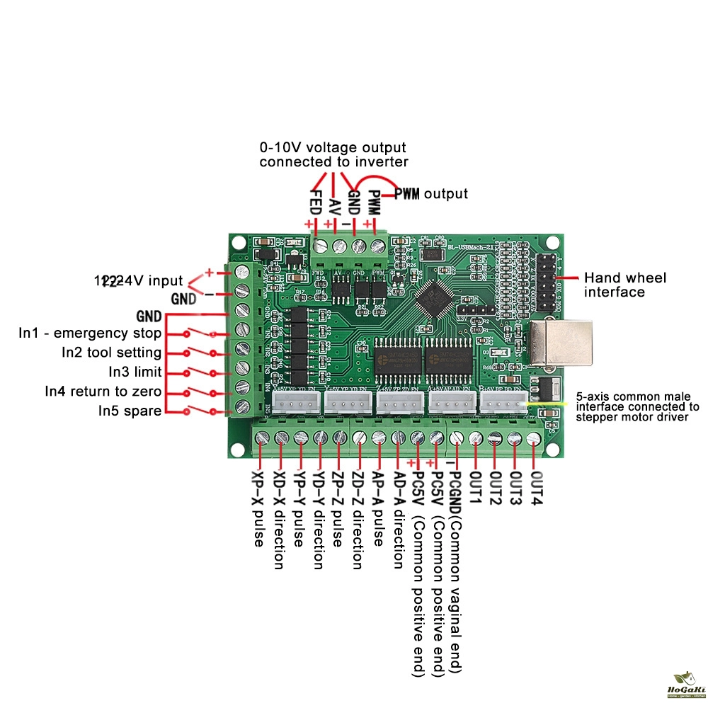 9. At the same time, a 5-axis interface cable socket (HX2.54) is provided, which is convenient for connecting the stepper motor driver.