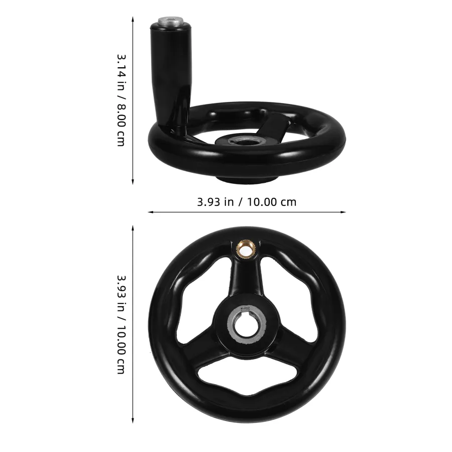 The Three-spoke Hand Wheel is made of Bakelite material, ensuring durability and sturdiness. Its three-spoke circular wheel rim design facilitates smooth operation of the machine tool. The smooth surface also adds aesthetic appeal to the machine tool. Installation is easy with simple steps, making it convenient for users.
