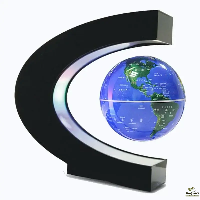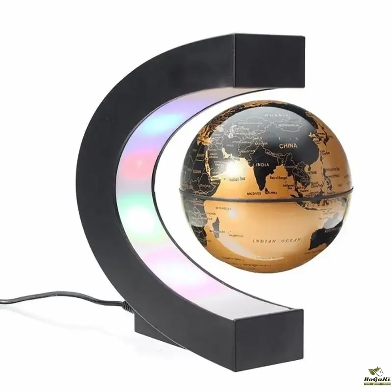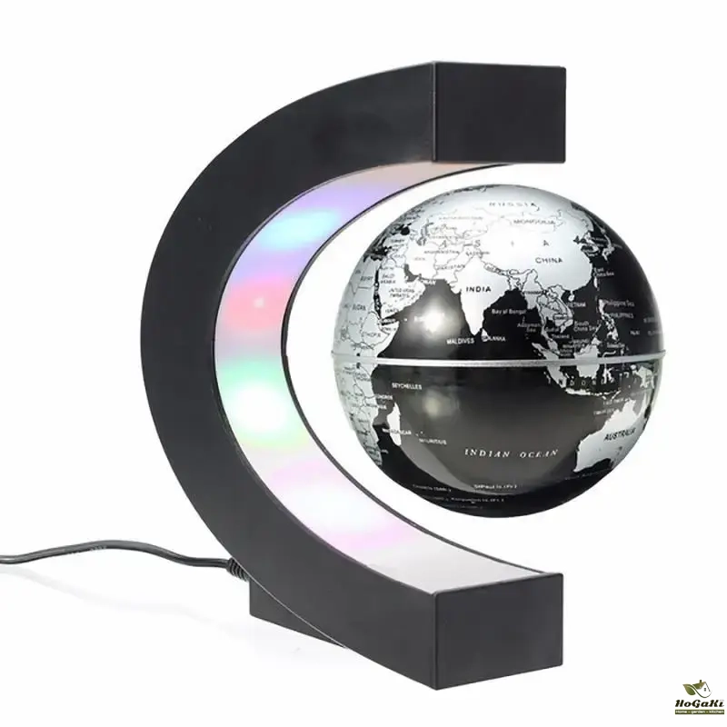 Pleasant home décor item: The floating and spinning globe inside the C-shaped ring will look mesmerizing to the eye. It gives your room and office space a lively but soothing vibe. There is a multi-color LED light inside the C-ring that enhances the effect even more. It uses the power of electromagnet and microprocessor to initiate the levitation process.