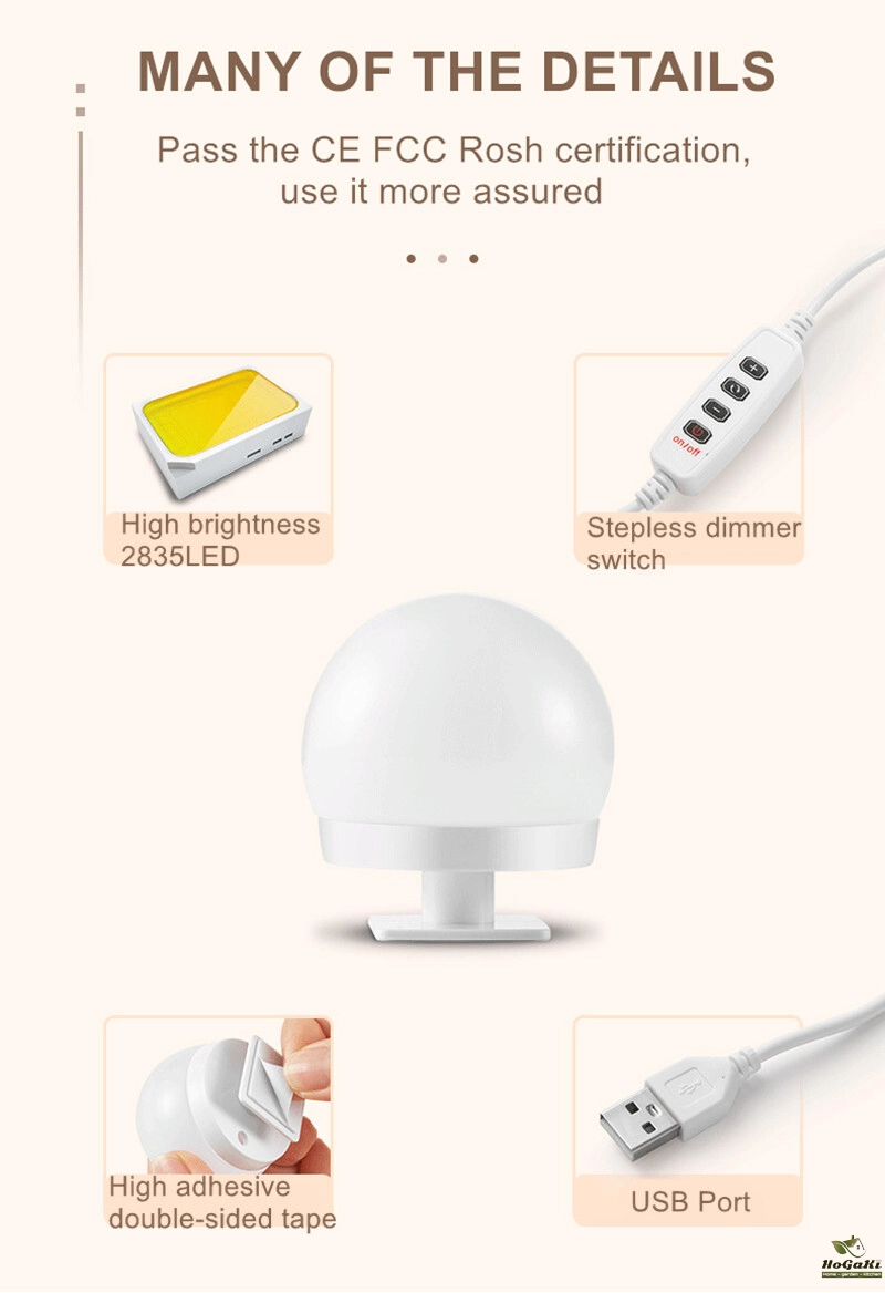 Tips: The makeup mirror light bulb supports multiple modes of power supply, but they do not include batteries.