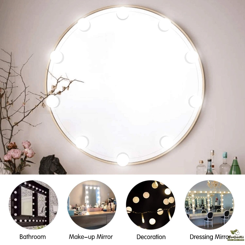 * Double-sided tapes and suction cups are provided, the bulbs can be directly and quickly sticked on mirrors with tapes or suction cups.