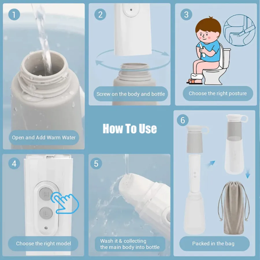 Portable Bidet: Our innovative electric portable bidet is the best solution for those who require high quality personal hygiene. Featuring a compact, portable design and advanced battery-powered technology. Our portable bidet is the perfect travel companion for those who want a cleaner, more hygienic experience while traveling.
