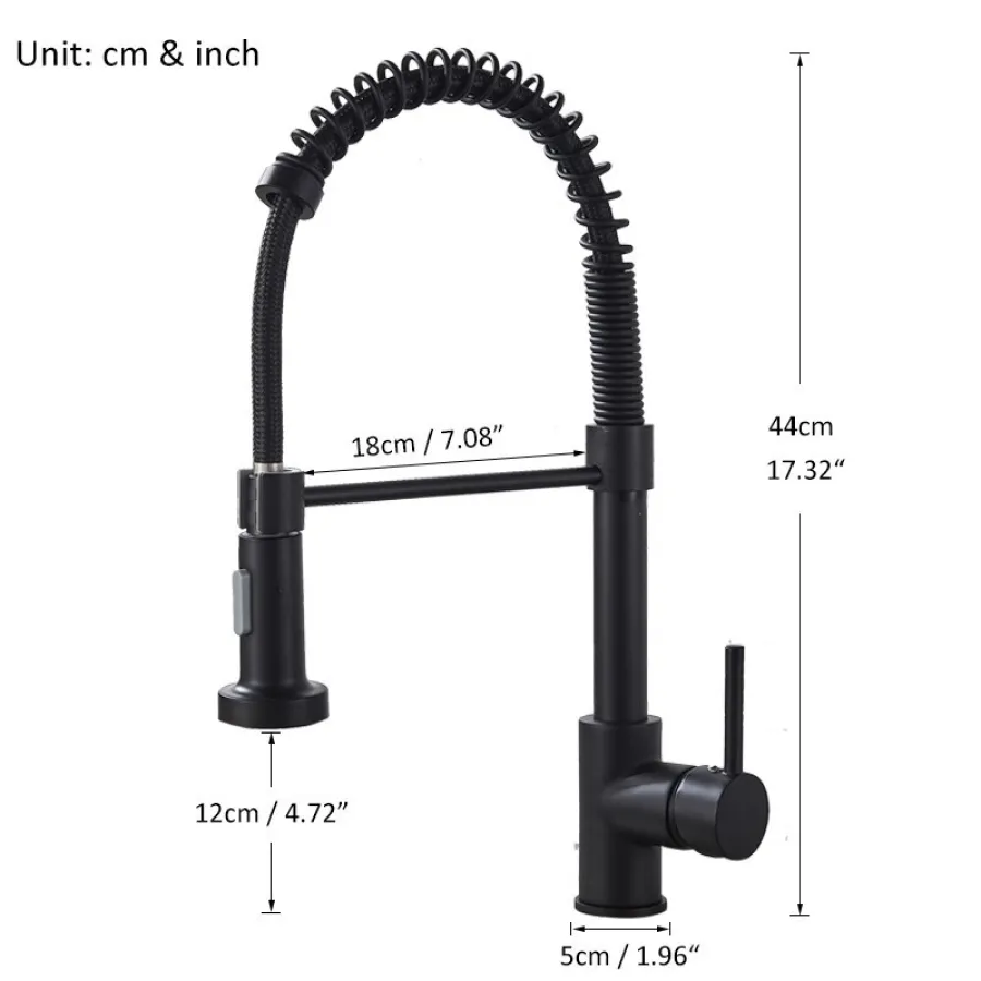 • Pull Down Design :The matte black pull down kitchen faucet features a contemporary design that saves space and provides easy access to hot and cold water.