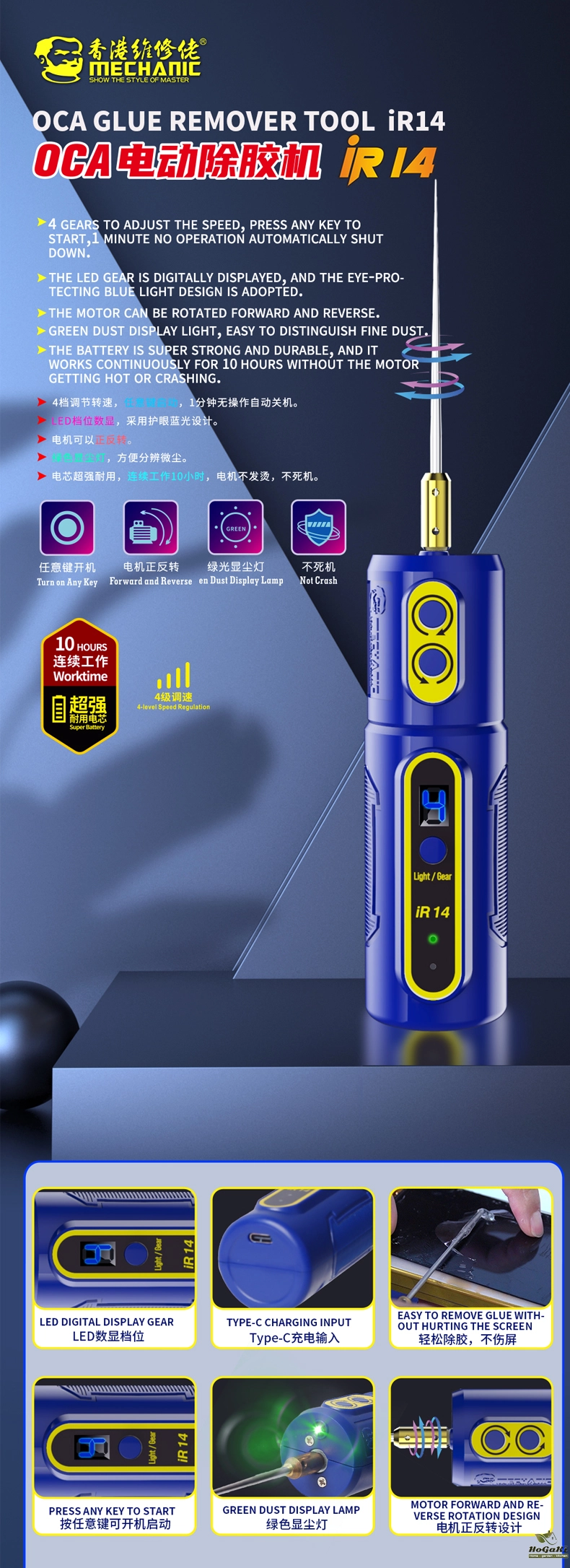 MECHANIC IR14/IR13/IR10 PRO Electric OCA Glue Remover Tool With Green Dust Display Lamp LED Display For Screen Remover Glue