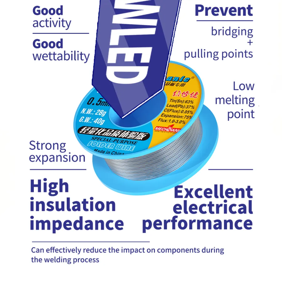 In the electronic soldering, the solder wire is matched with the soldering iron, and the high-quality soldering iron provides stable and continuous heat of fusion, and the solder wire serves as a filler.