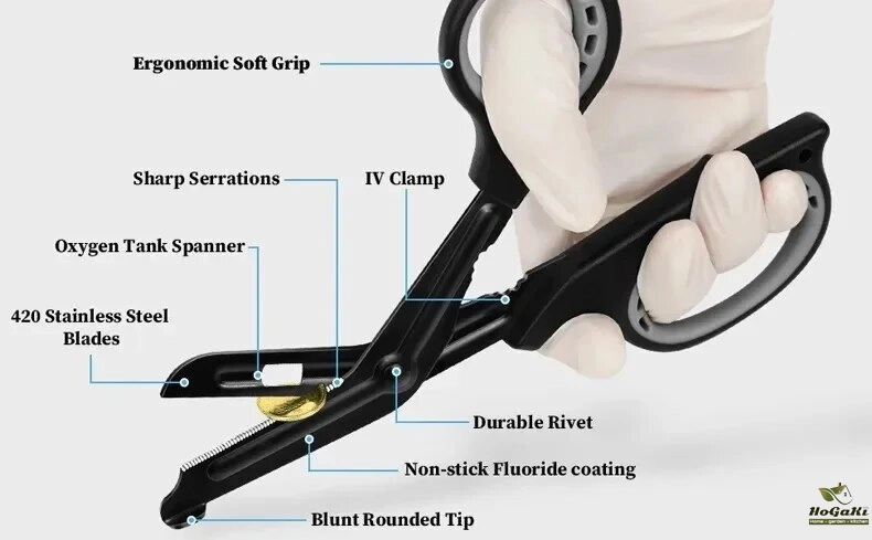 【Perfect Design】The 7.5-inch RISEMART medical shears combine three functions into one: powerful cutting ability, an IV clamp, and an oxygen tank wrench hole. They save time, are efficient, and convenient for healthcare professionals.