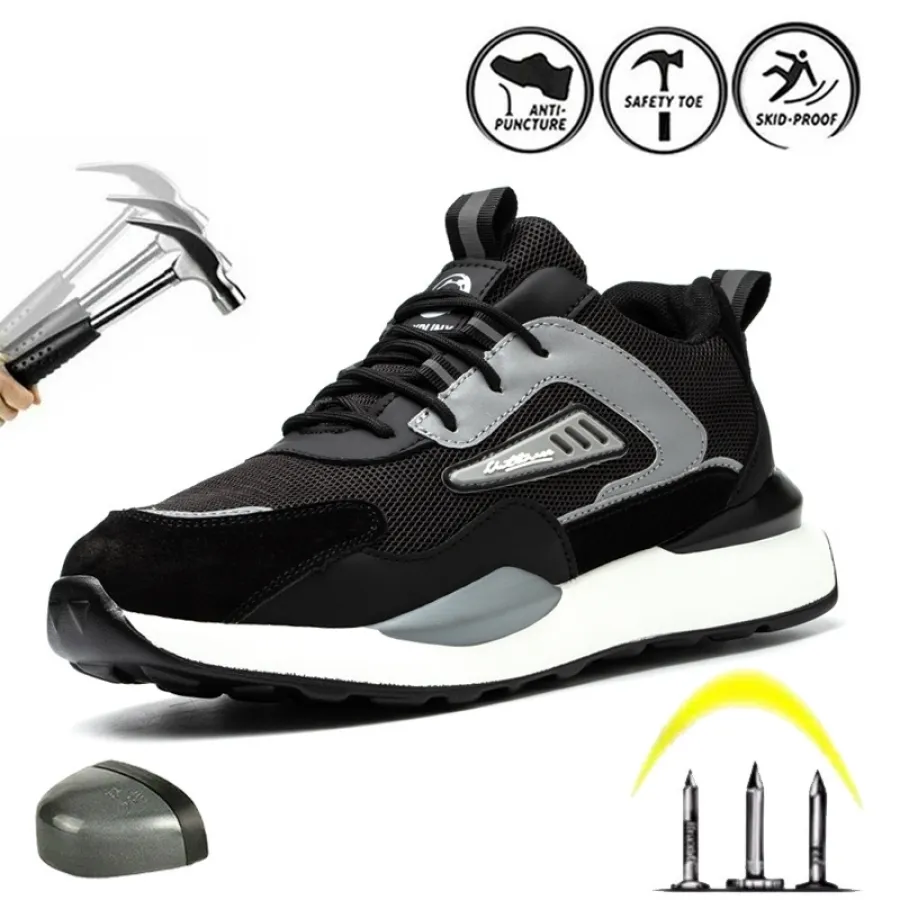 Work Safety Shoes Summer Breathable Men Air Cushion Work Protective Shoes Sneakers Anti-Puncture Work Shoes Male Steel Toe Shoes