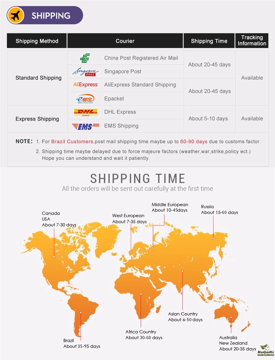 Packages from our warehouse in China will be shipped by ePacket or EMS depending on the weight and size of the product. Packages shipped from our US warehouse are shipped through USPS.
