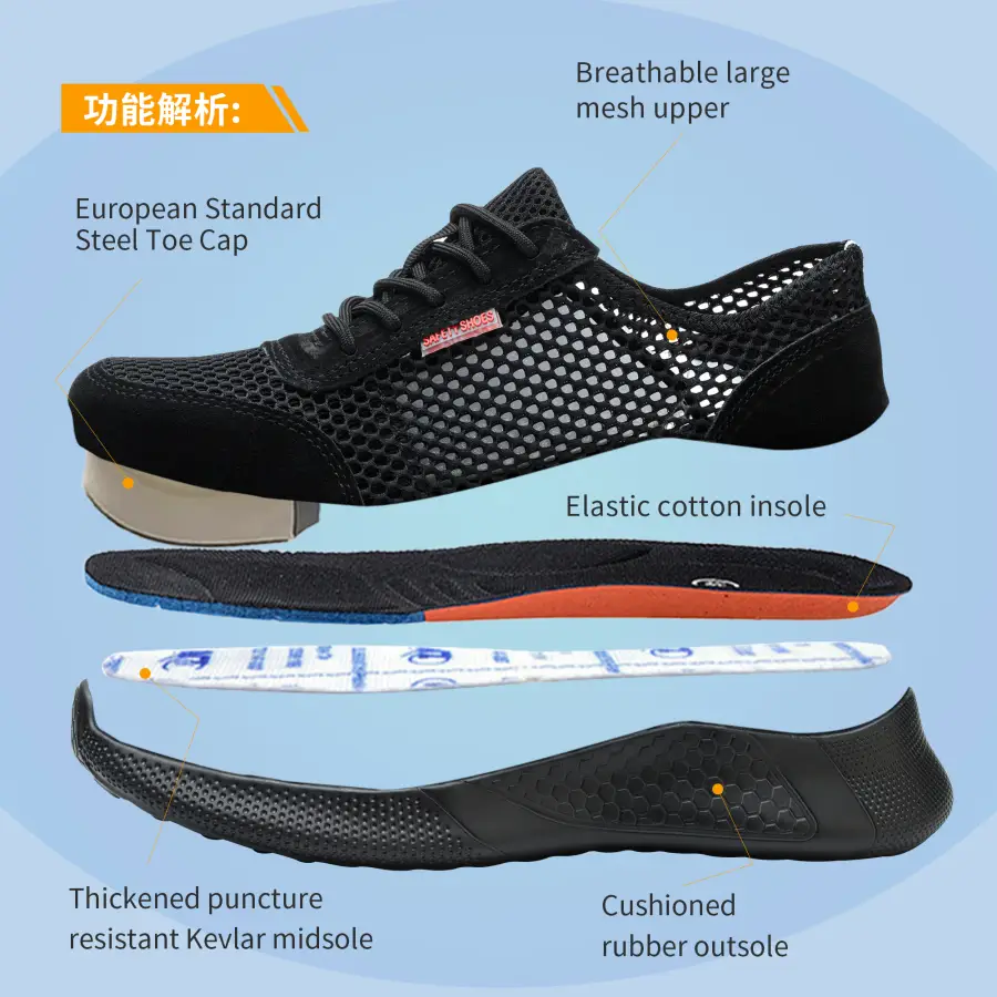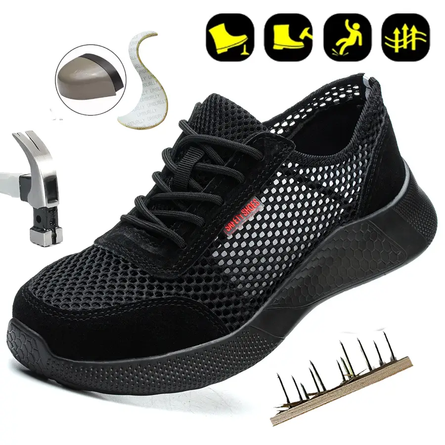 Summer Safety Shoes Men Lightweight Anti-smashing Anti-piercing Wear-resistant Flying Woven Breathable Deodorant Work Shoes
