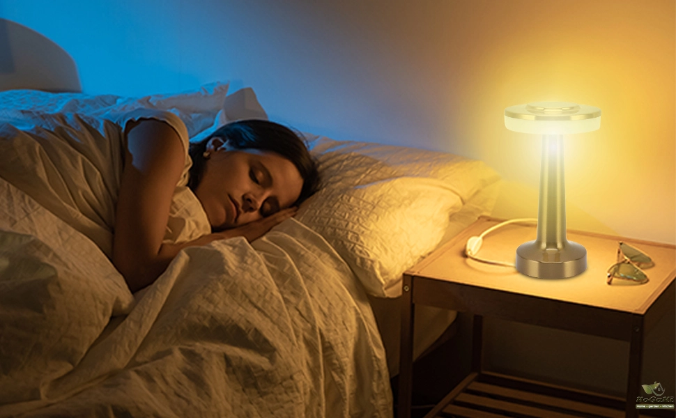 [ 3 Colors & Stepless Dimming ] - The top of nightstand lamp is built-in a touch sensor dimmer with 3 colors to suit different scenes, Tap to change color modes, Long press to adjust brightness.