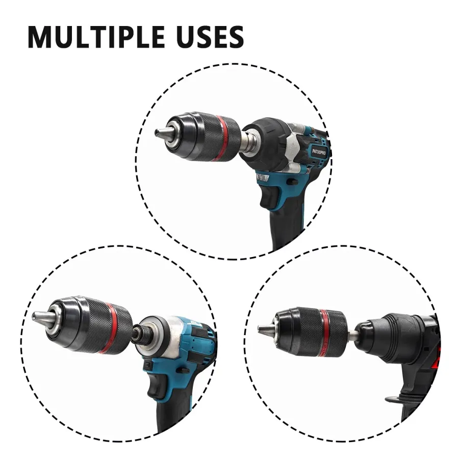 Keyless Drill Chuck 0.8-10mm 3/8-24UNF, Hex Shank/SDS-Plus/Square Quick Grip Adapter, Chuck for Drill Bit Screwdriver Tap&Socket