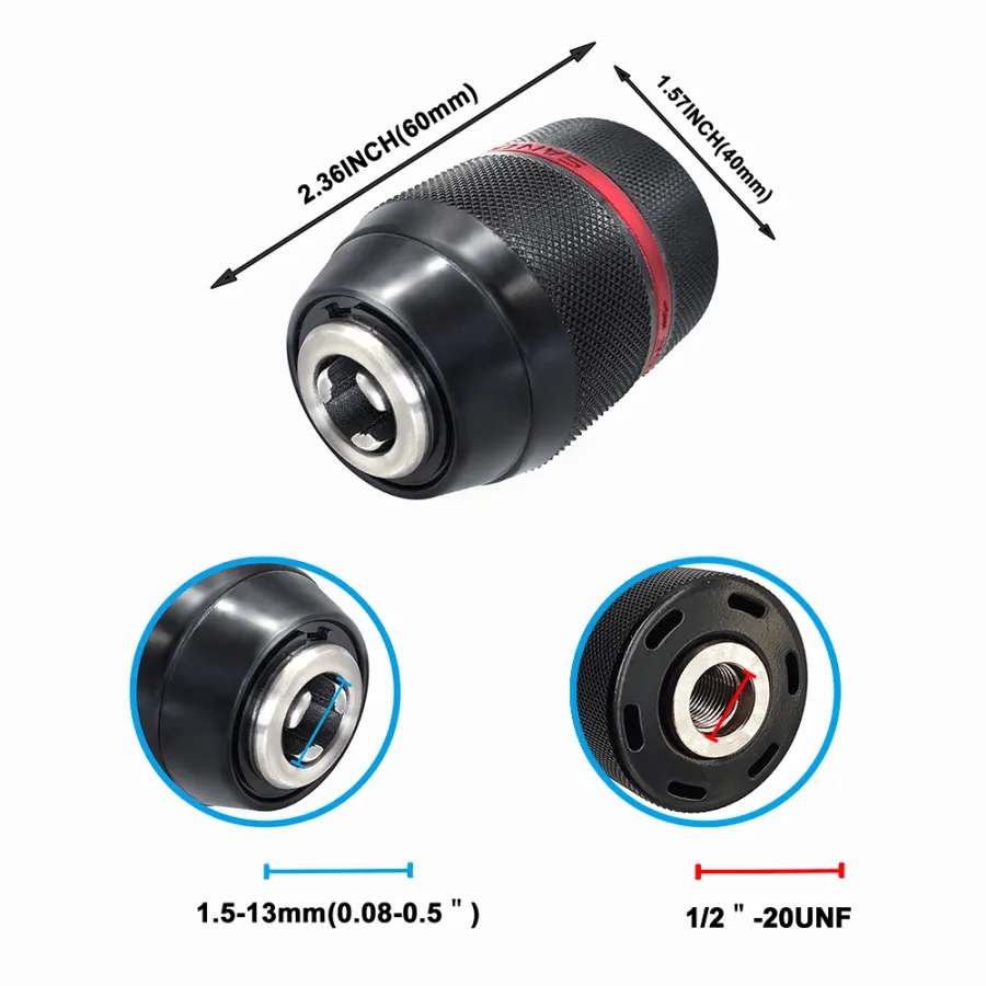 - Greater clamping force with lock, effectively preventing drill bits from loose off, more reliable.