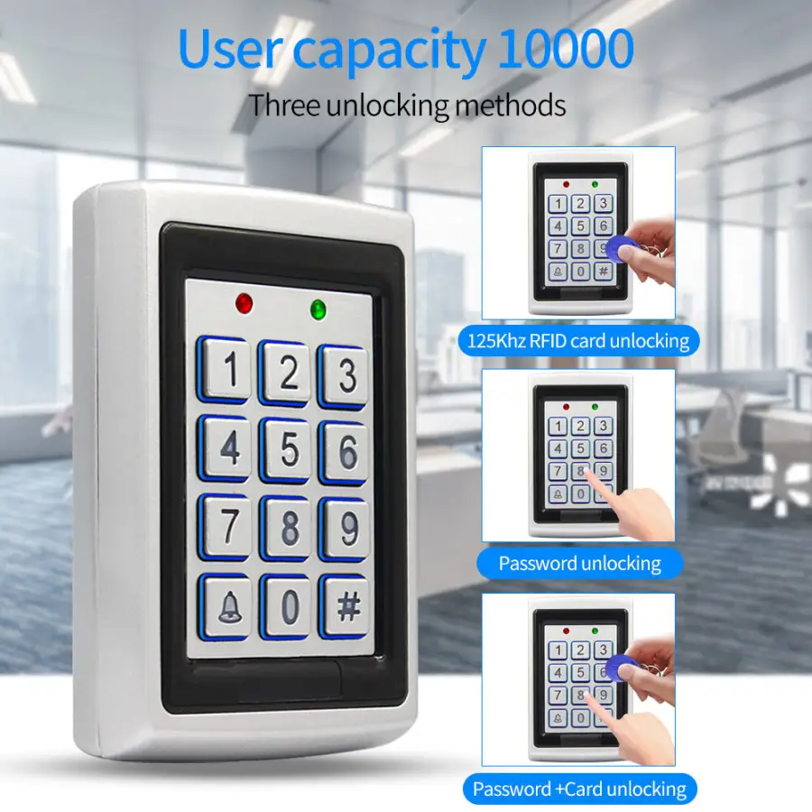 Waterproof Metal Rfid Access Control Keypad With 1000 Users 125KHz Card Reader Keypad Key Fobs Door Access Control System