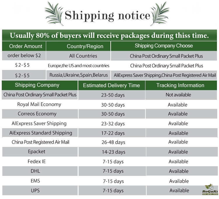 If you can't find the estimated delivery time on the product detail page, you can look at the following table for reference.