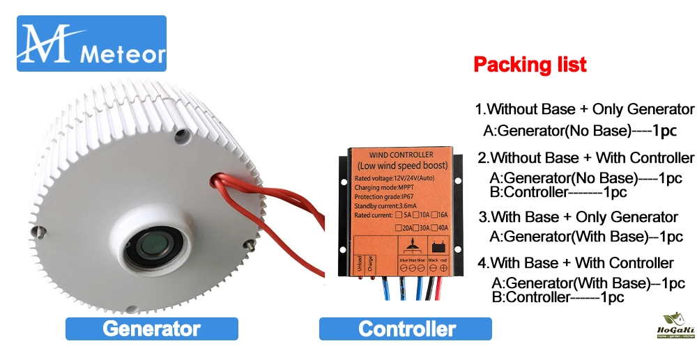Meteor New Energy Generators Low Speed 2000W 12V 24V 48V AC Gearless Permanent Magnet Generators Use For Water Power and Turbine