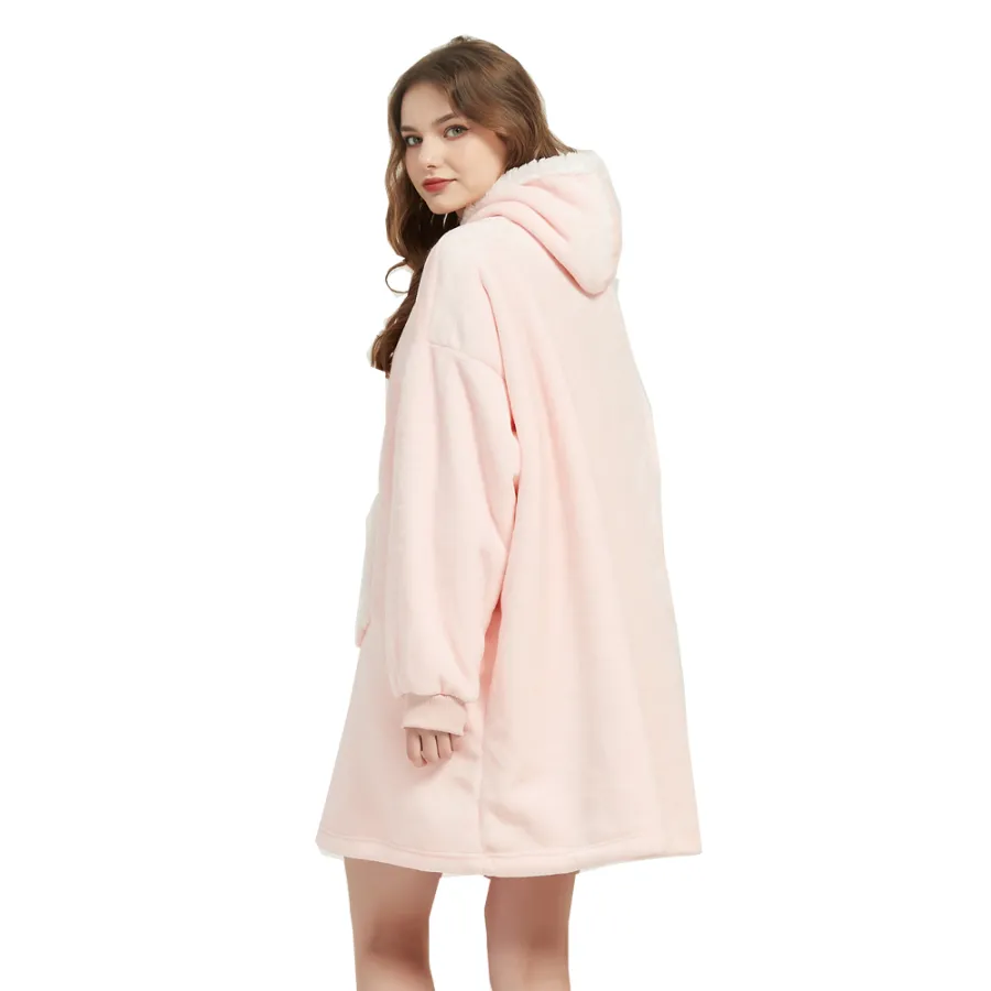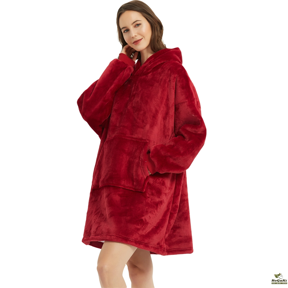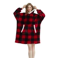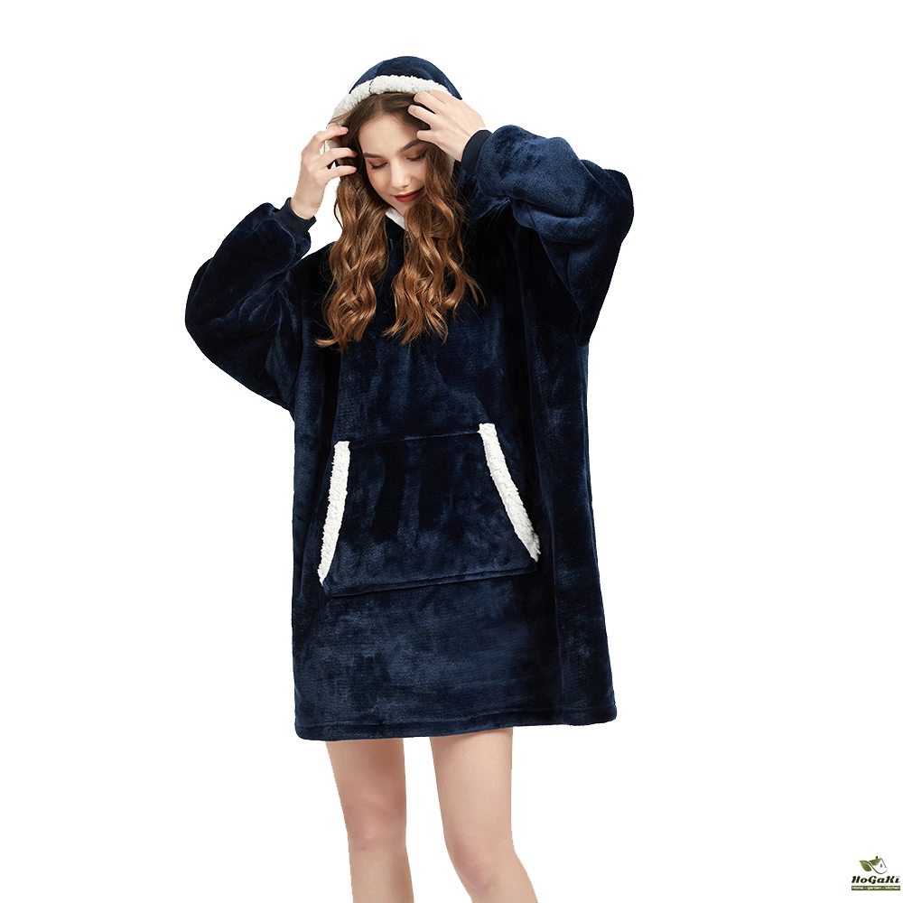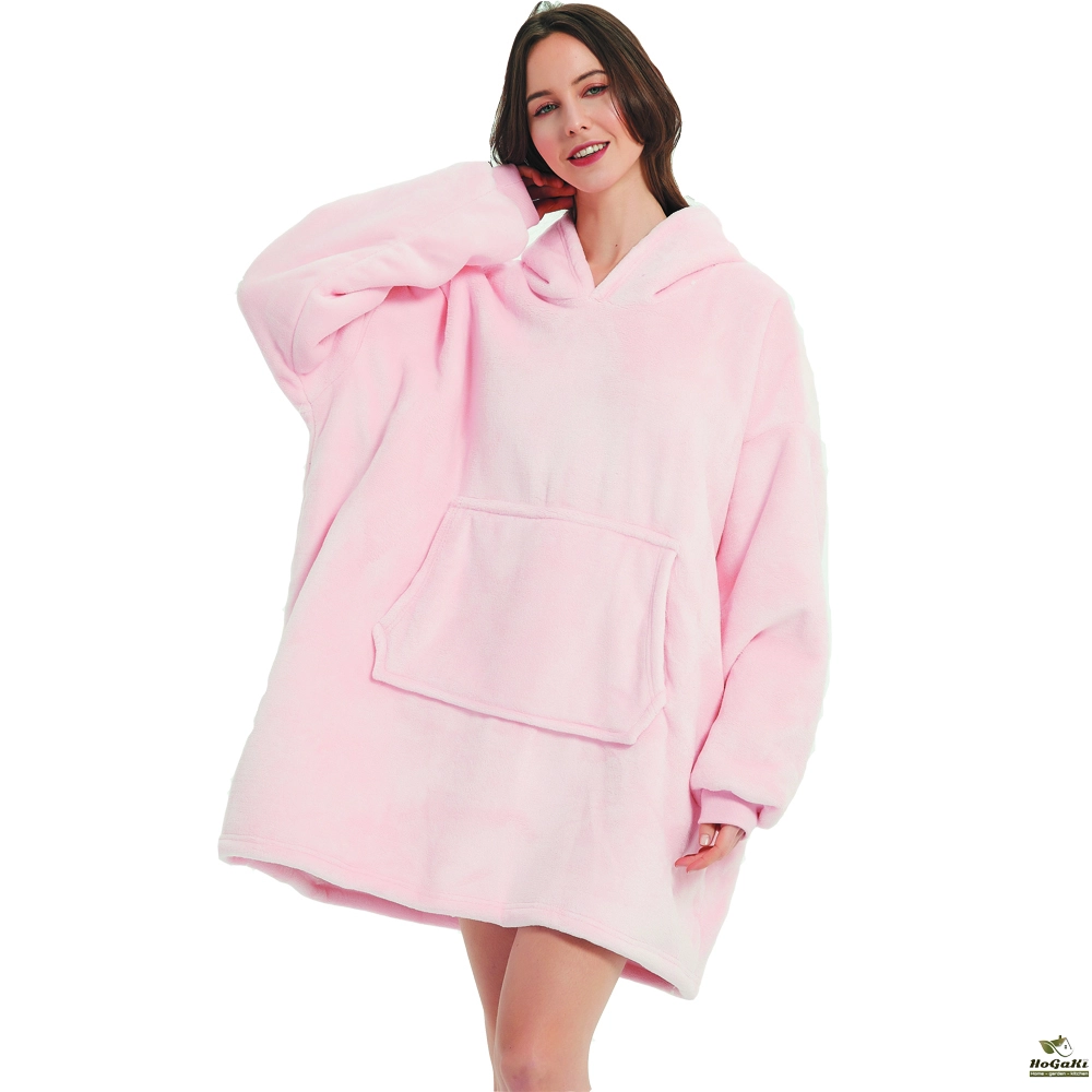 Winter Outdoor Hooded Pocket Blankets Warm Soft Hoodie Slant Robe Bathrobe Sweatshirt Pullover TV Fleece Blanket With Sleeves