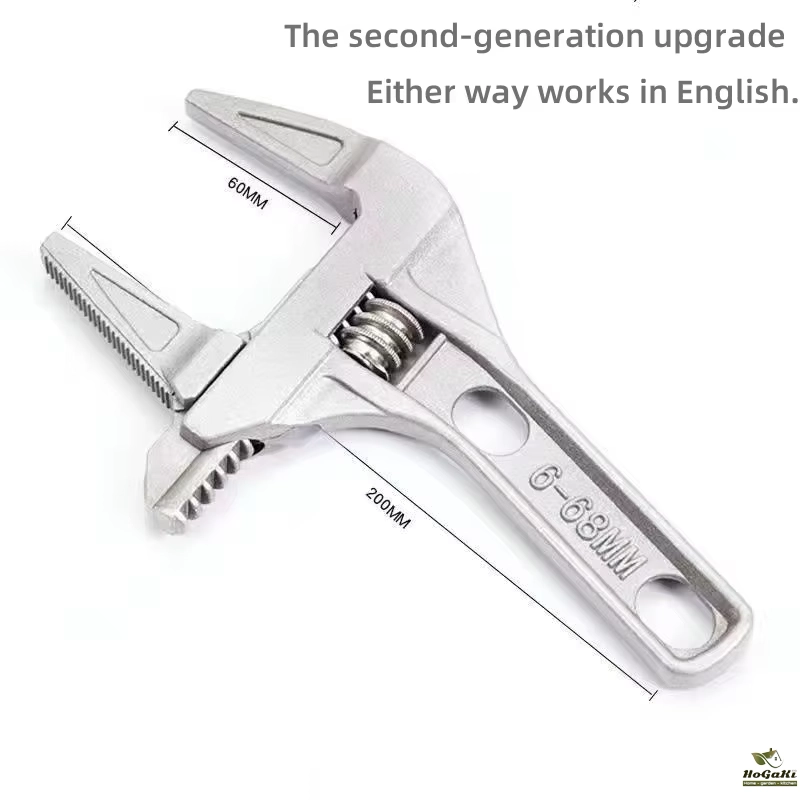 Adjustable Size: This sturdy yet lightweight aluminum wrench features an adjustable jaw with an opening range of 6mm to 68mm. The wide jaw and short handle make it perfect for tightening basin drain back nuts.