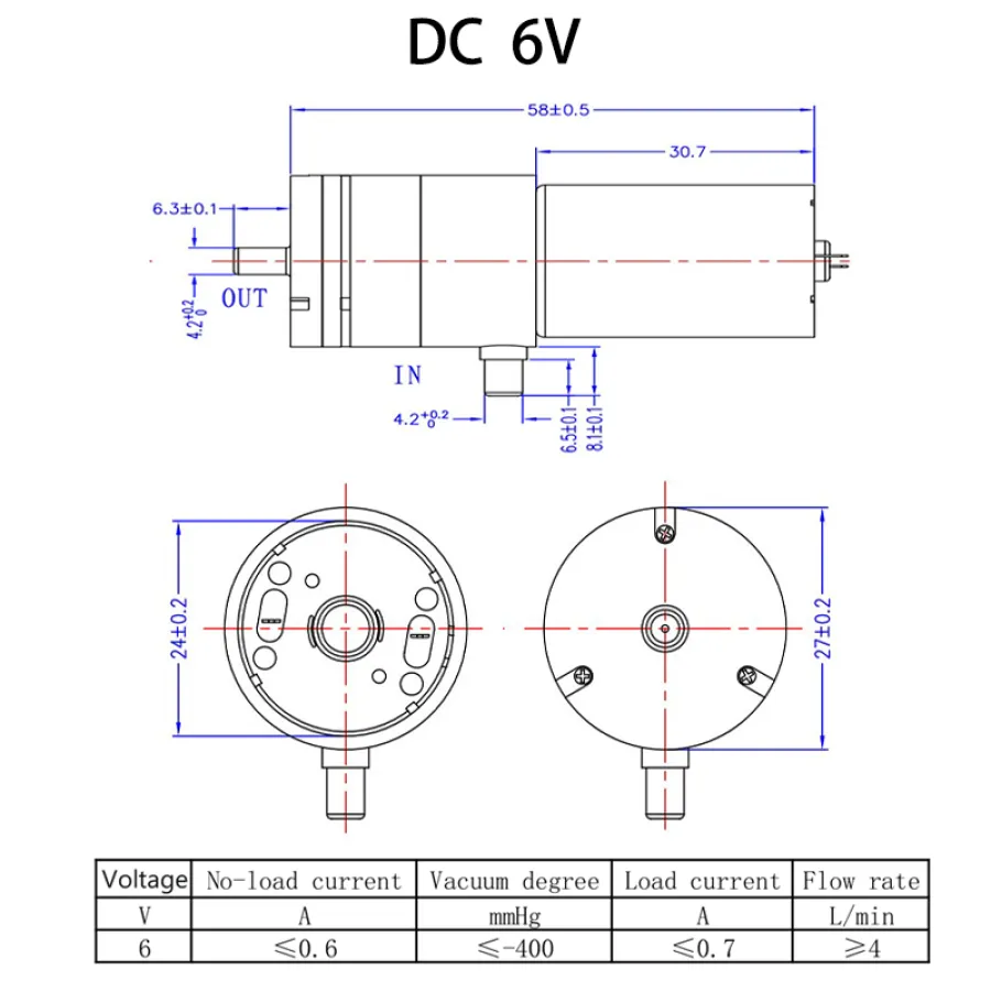 Noise: Pump body underlay is 5cm thick sponge,placed on the noise meter 30cm Rated voltage under inflation pressure from 0 to 420mmHg the measured value is less than 60dB