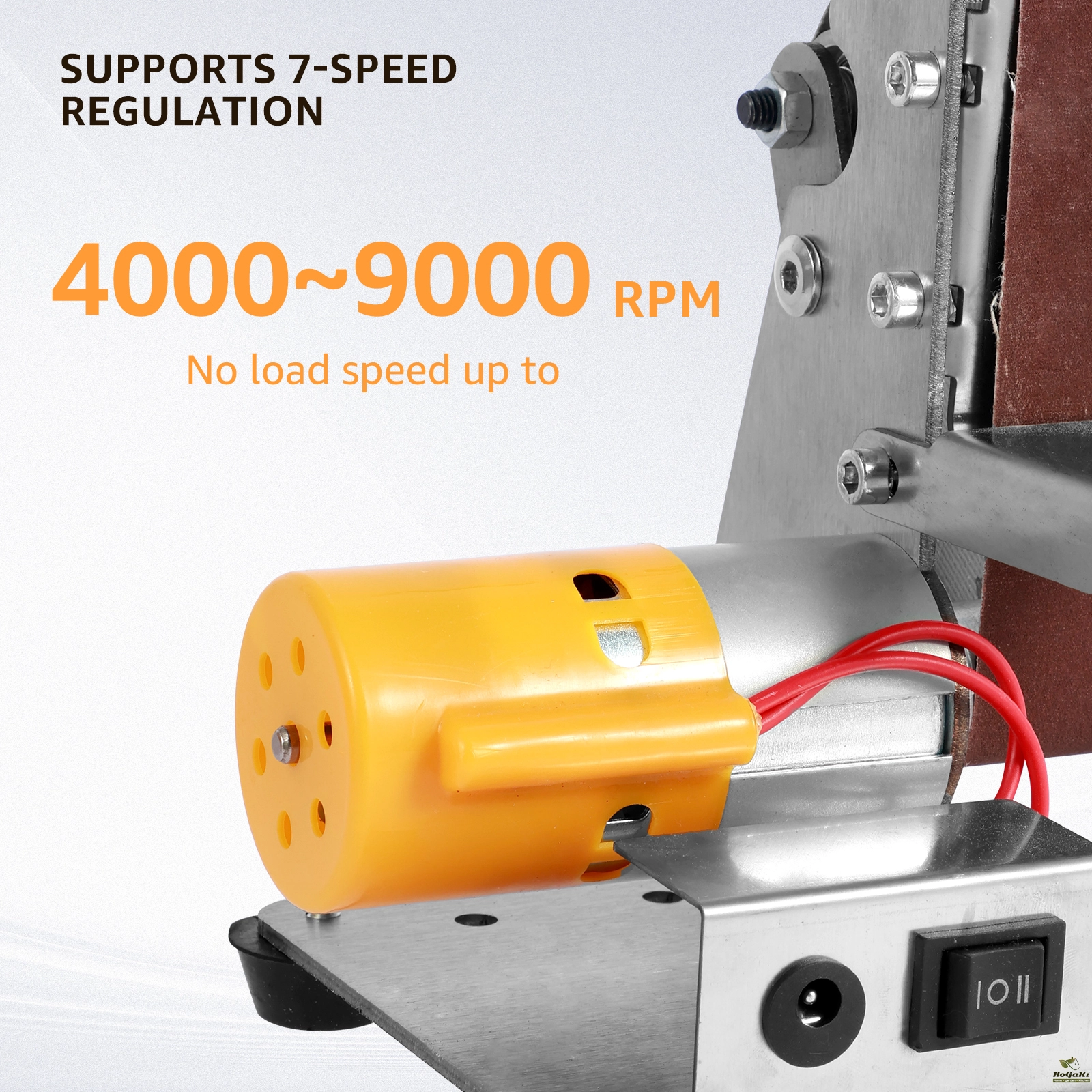 [7 Adjustable Speed] This multifunctional mini belt sander has 7-speed adjustable settings, which can rotate in both directions from low speed for fine polishing to high speed for fast sanding to meet your specific requirements.
