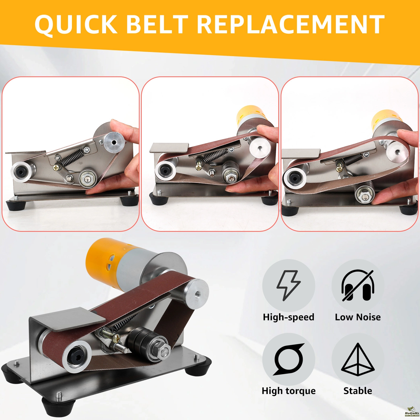 2. [High Speed and Torque] The product has stable motor with high speed and torque while maintaining low noise levels. It has a fixed 15-degree belt angle and a three-bearing design, suitable for metal working and quick belt changes.