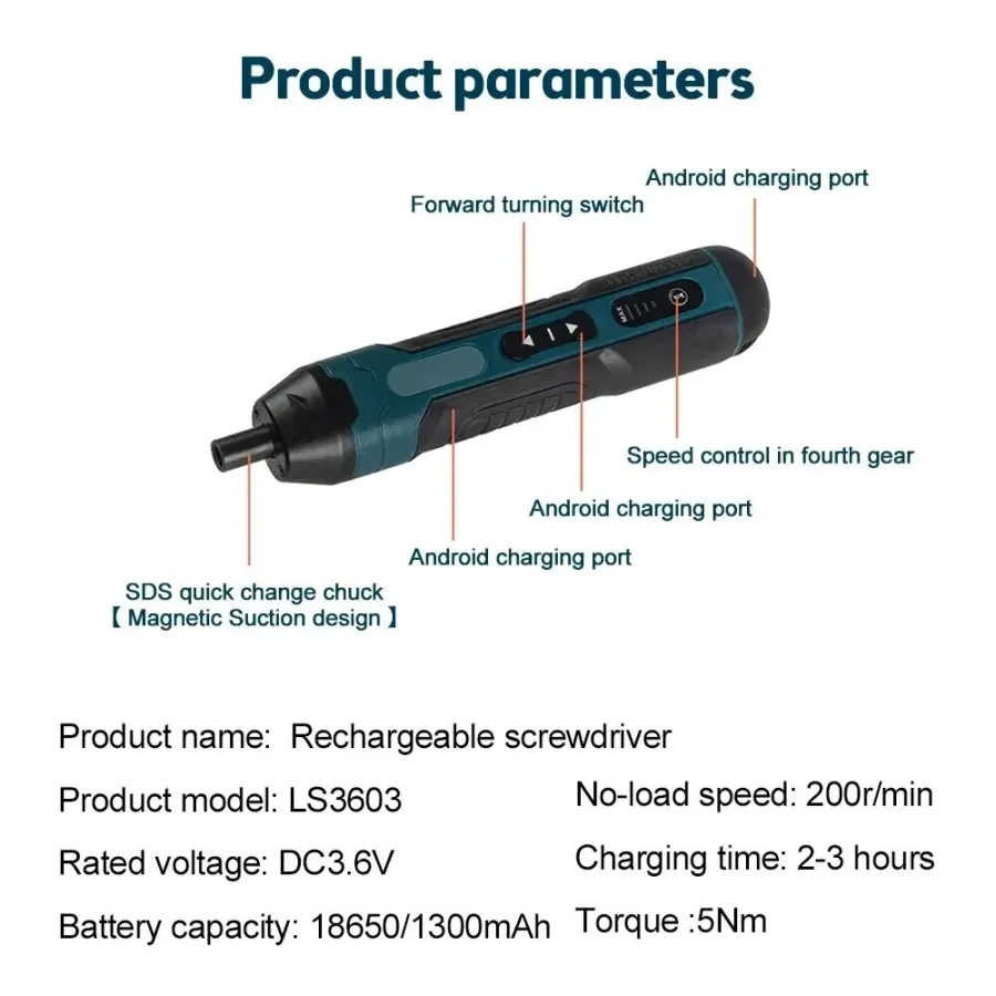 • High Rechargeability :With a 1300mah rechargeable battery, this screwdriver ensures long-lasting performance and convenience, eliminating the need for constant recharging.