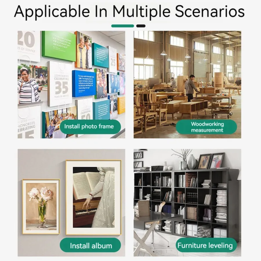 3. Applicable to a variety of scenarios, the horizontal bubble accuracy can reach 0.75mm/m, can be used to install photo frames, install photo albums, manual measurement, furniture level