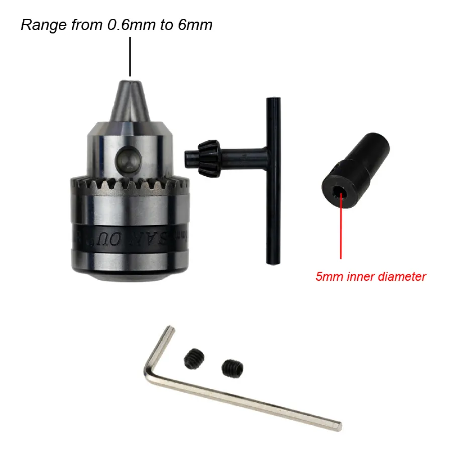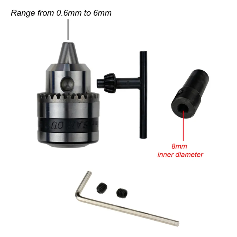 【Specification of the Drill Chuck :】Material: Main Material Metal,Drill Chuck Range : 0.6mm-6MM.
