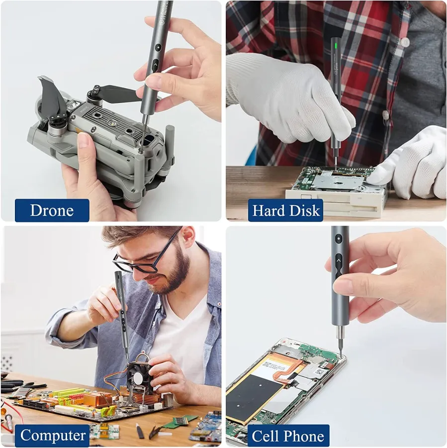 【Widely Applicable】This Power screwdriver includes 48 precision bits, a magnetic worktable pad, sucker, crowbar, tweezers, etc. Suitable for the quartz watch, camera digitals, radios, tablet PC, cellphones, drones, joystick, laptop, iPhone, eyeglass, macbook, Xbox and toys, furniture, etc.