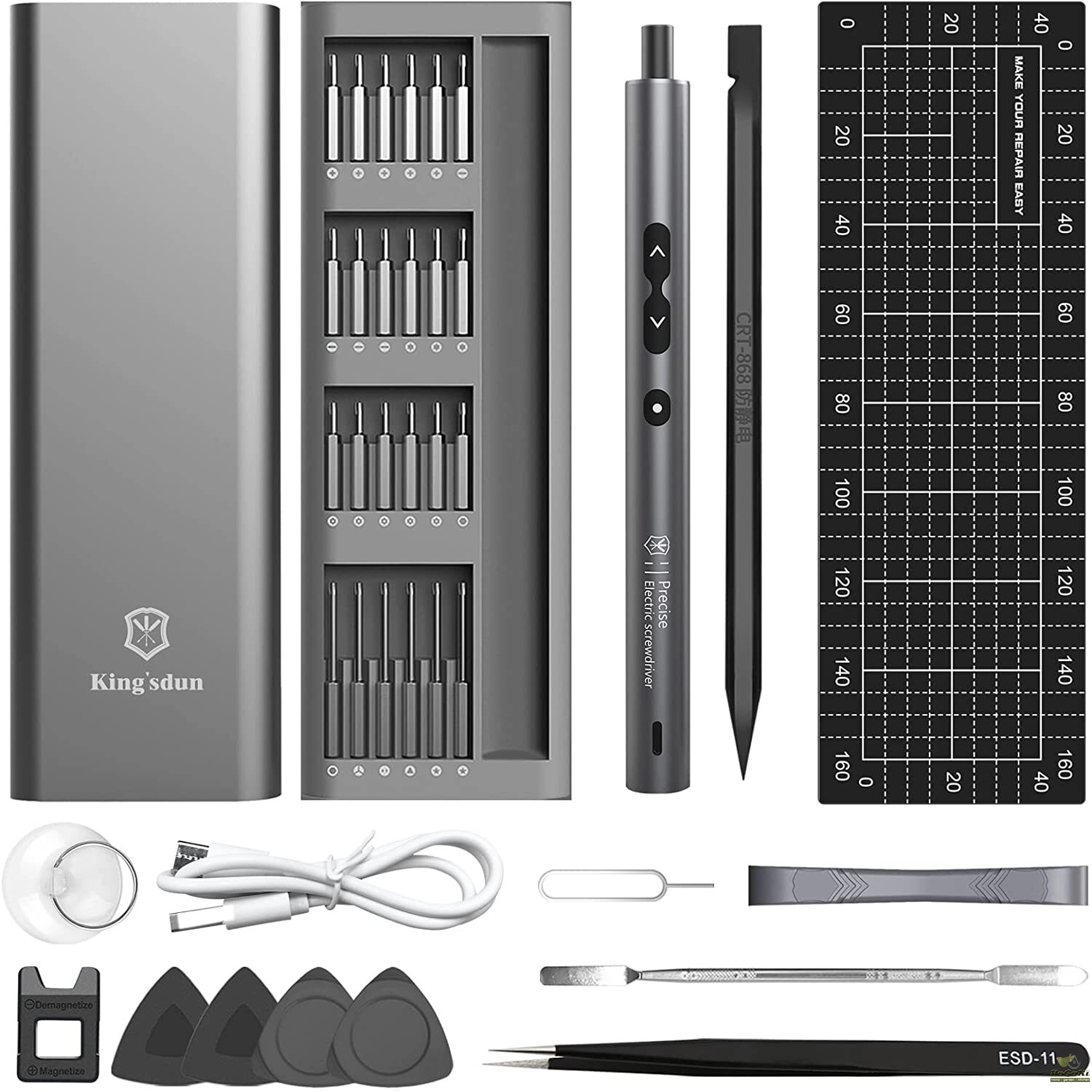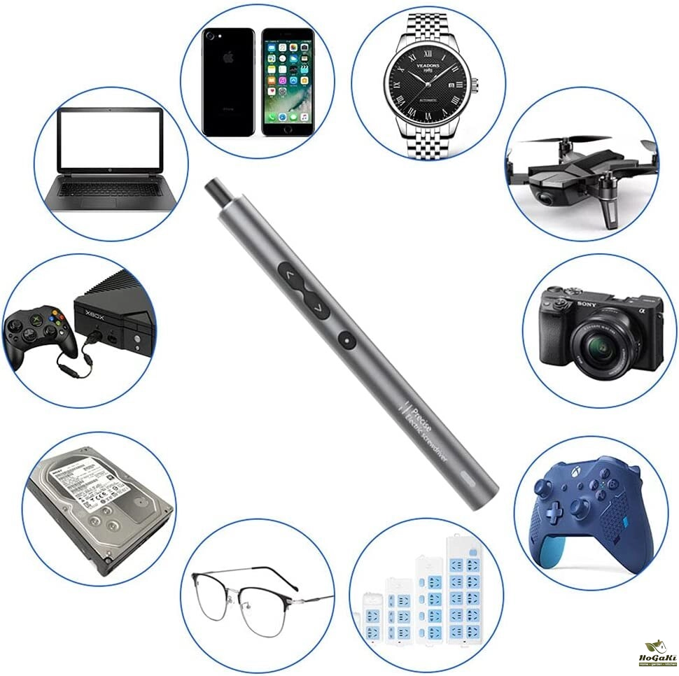 【Widely Applicable】This Power screwdriver includes 48 precision bits, a magnetic worktable pad, sucker, crowbar, tweezers, etc. Suitable for the quartz watch, camera digitals, radios, tablet PC, cellphones, drones, joystick, laptop, iPhone, eyeglass, macbook, Xbox and toys, furniture, etc.