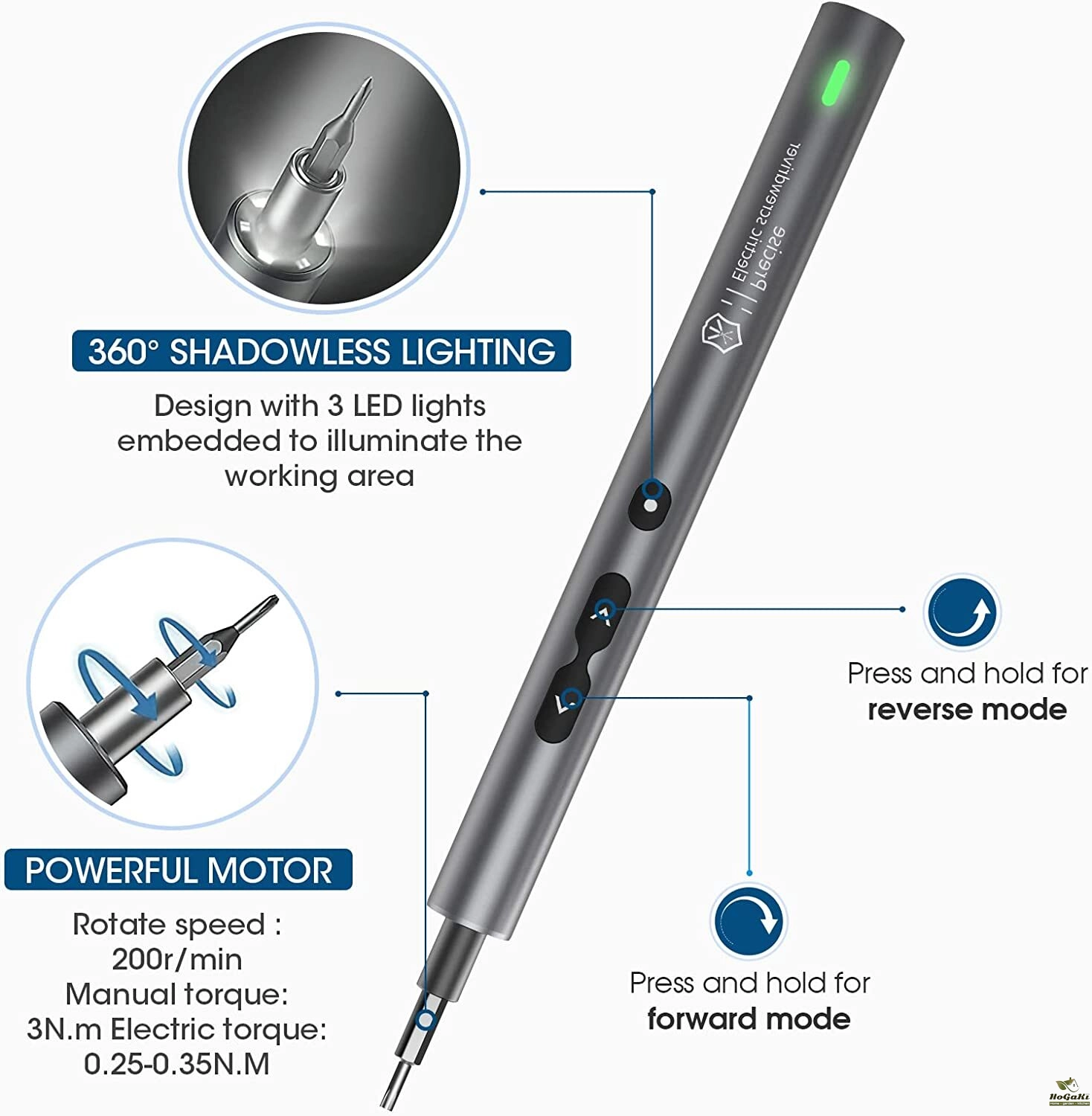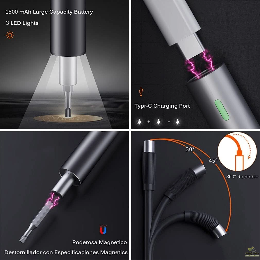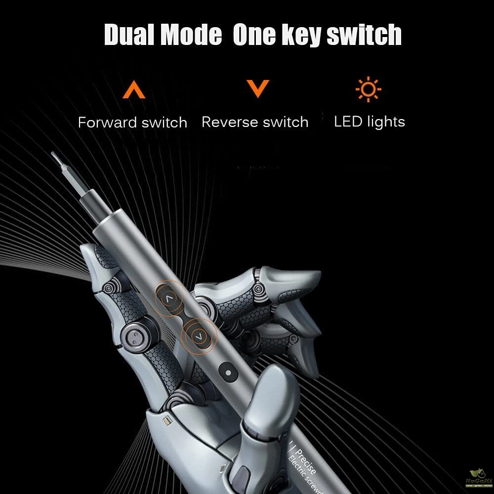 【LED Light & USB Charging】360° Shadow-less lighting design, embed 3 LED lights to brighten the working area. Strong magnetic bits design, the screwdriver will firmly absorb the screwdriver bits. Enter the cordless handheld electric precision screwdriver, making complex assemblies quickly and easily.