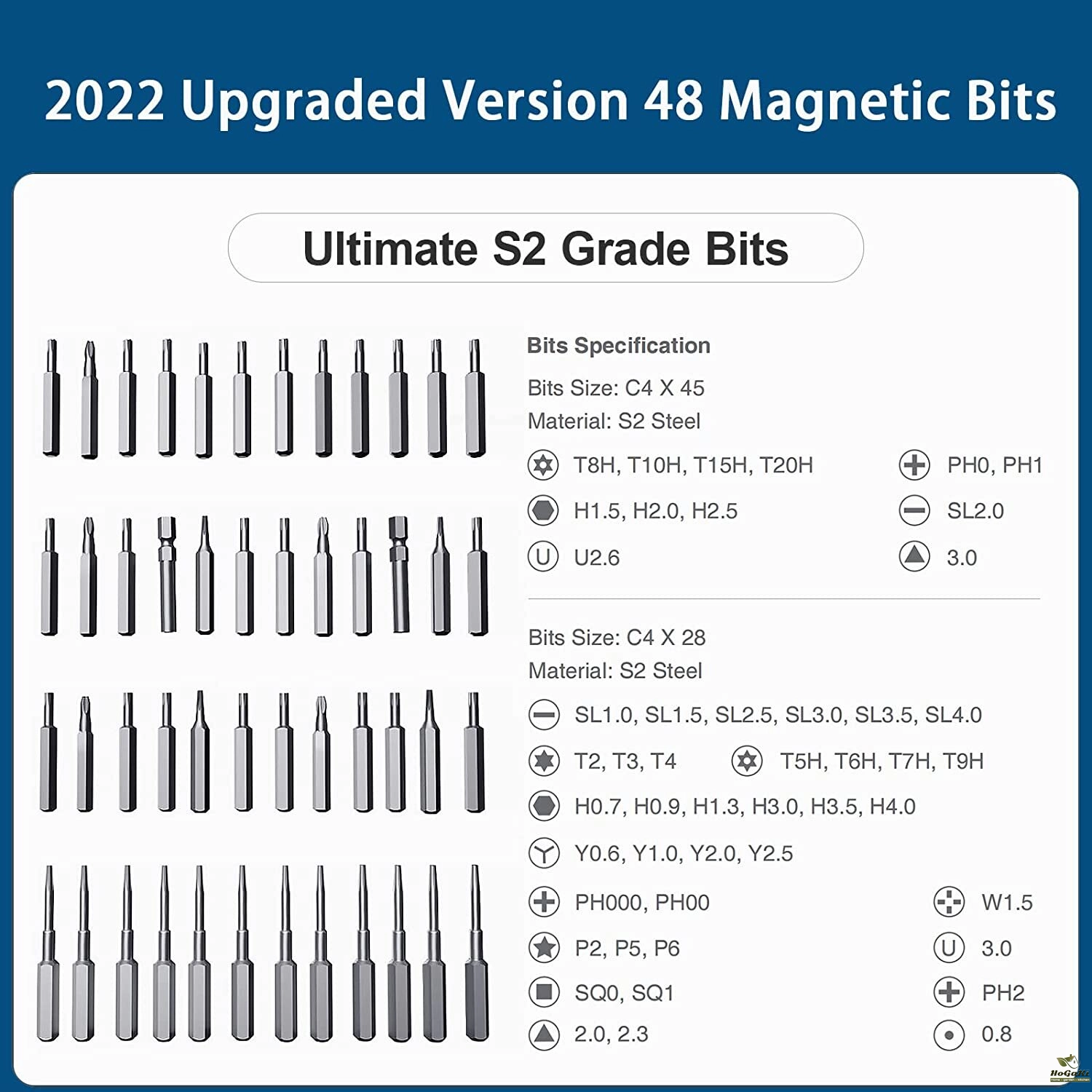 【Upgraded Excellent Quality】62 in 1 Precise Electric Screwdriver Set designed with durable aluminum alloy surface, equipped with 48pcs premium quality S2 steel screwdriver bits with magnetic design. The pen-shaped body is ergonomically designed and easy to grasp.