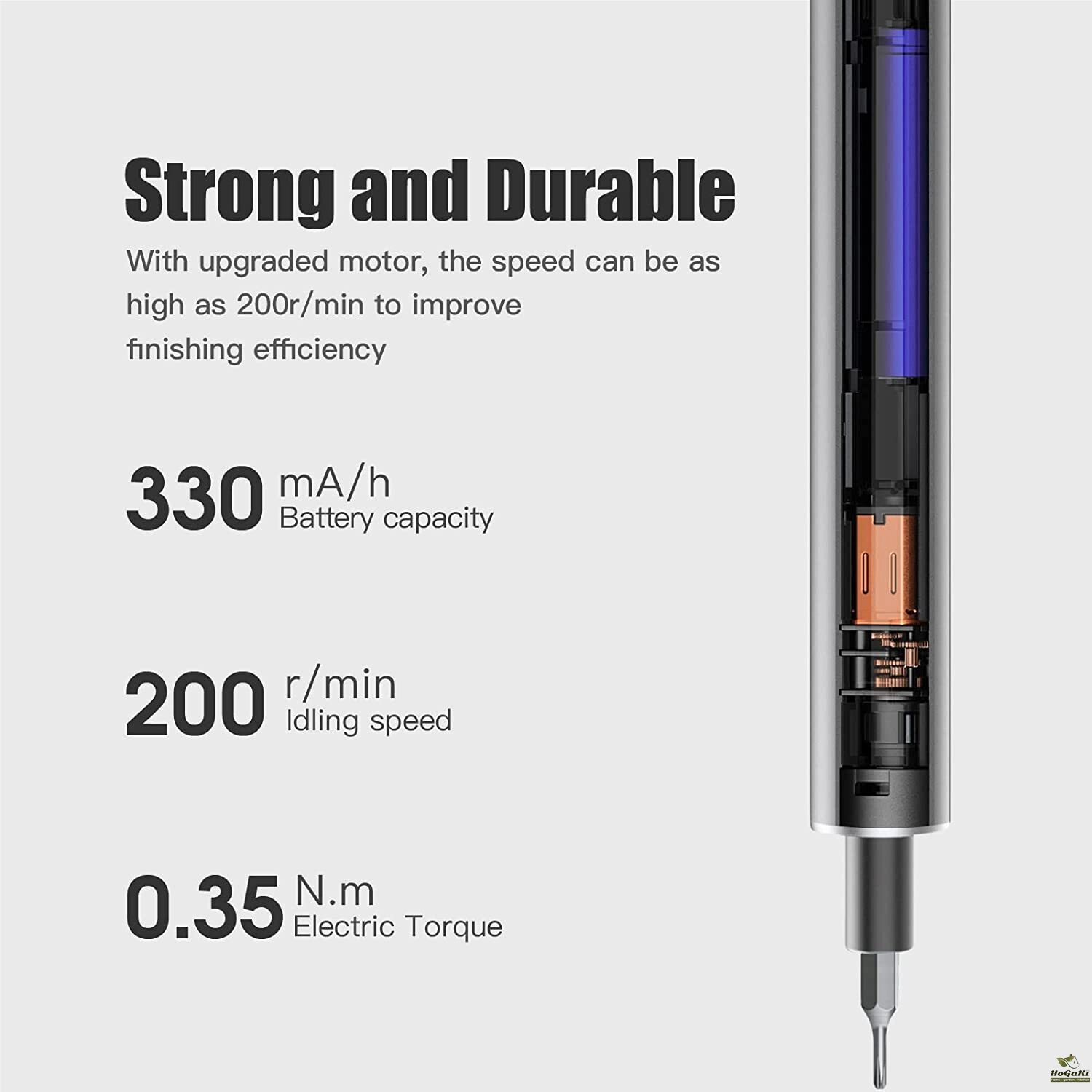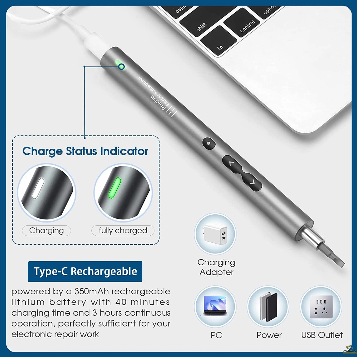 【Small and Powerful】This mini power screwdriver has a rotate speed of 200r/min, automatic/manual mode with 0.25-0.35/3N.m, powered by 350mAh rechargeable lithium battery, 30~40 mins charging time, and works continuously for 2-3 hours which has total power enough for your electronic repair work.