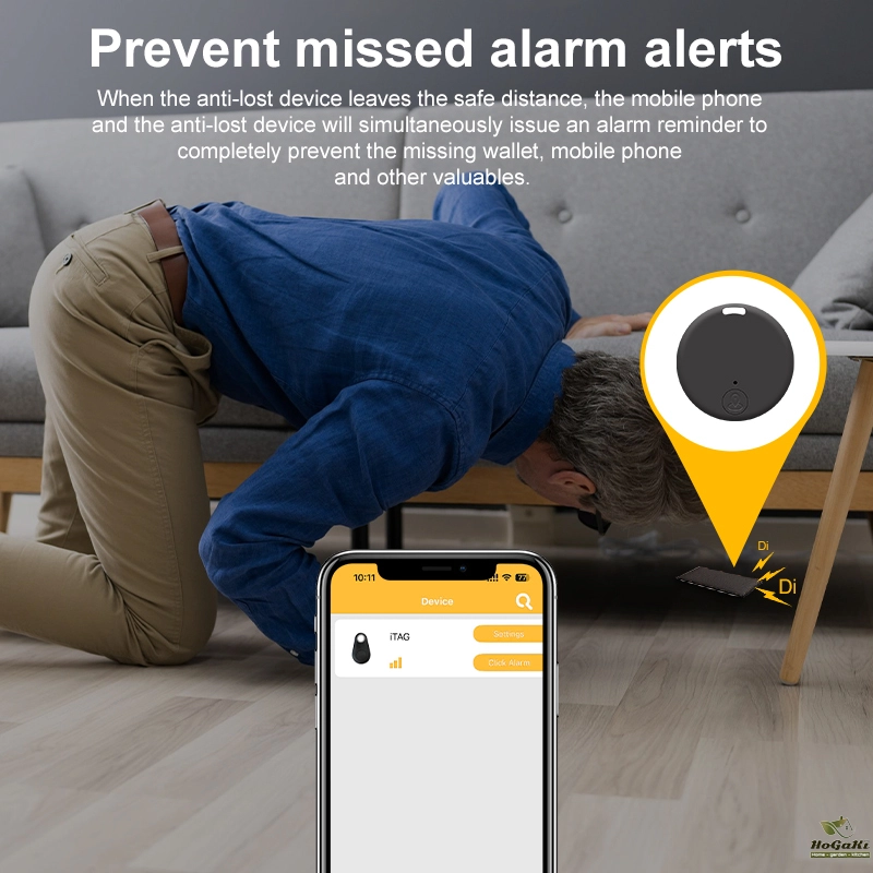 4: Search for items in both directions and easily retrieve items. Click the alarm clock through the APP, and the items will automatically sound. Double-click the round button of the anti-lost device, and the phone will automatically ring.