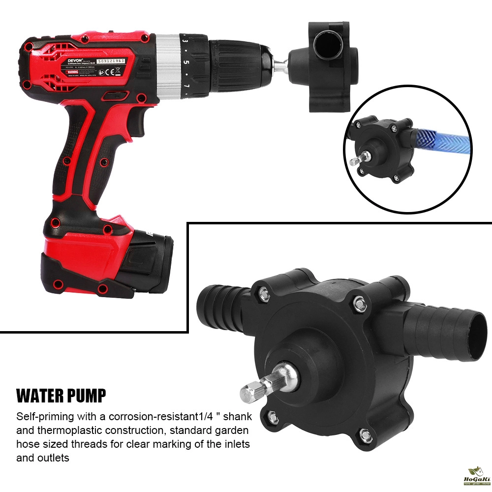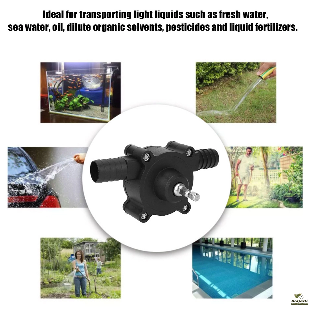 High flow, stable performance and high efficiency. The flow rate of the pump varies according to the power and speed of the electric drill used, and it can pump 20 to 30 liters of water per minute.